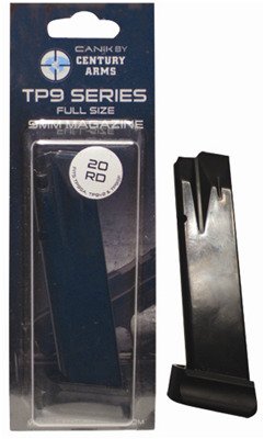 Be ready to reload with the Century Arms TP9 9mm Full-Size 20-Round Replacement Magazine. This magazine holds 20 rounds of 9mm ammunition and is compatible with Century Arms TP9SA, TP9v2 and TP9SF handgun models.