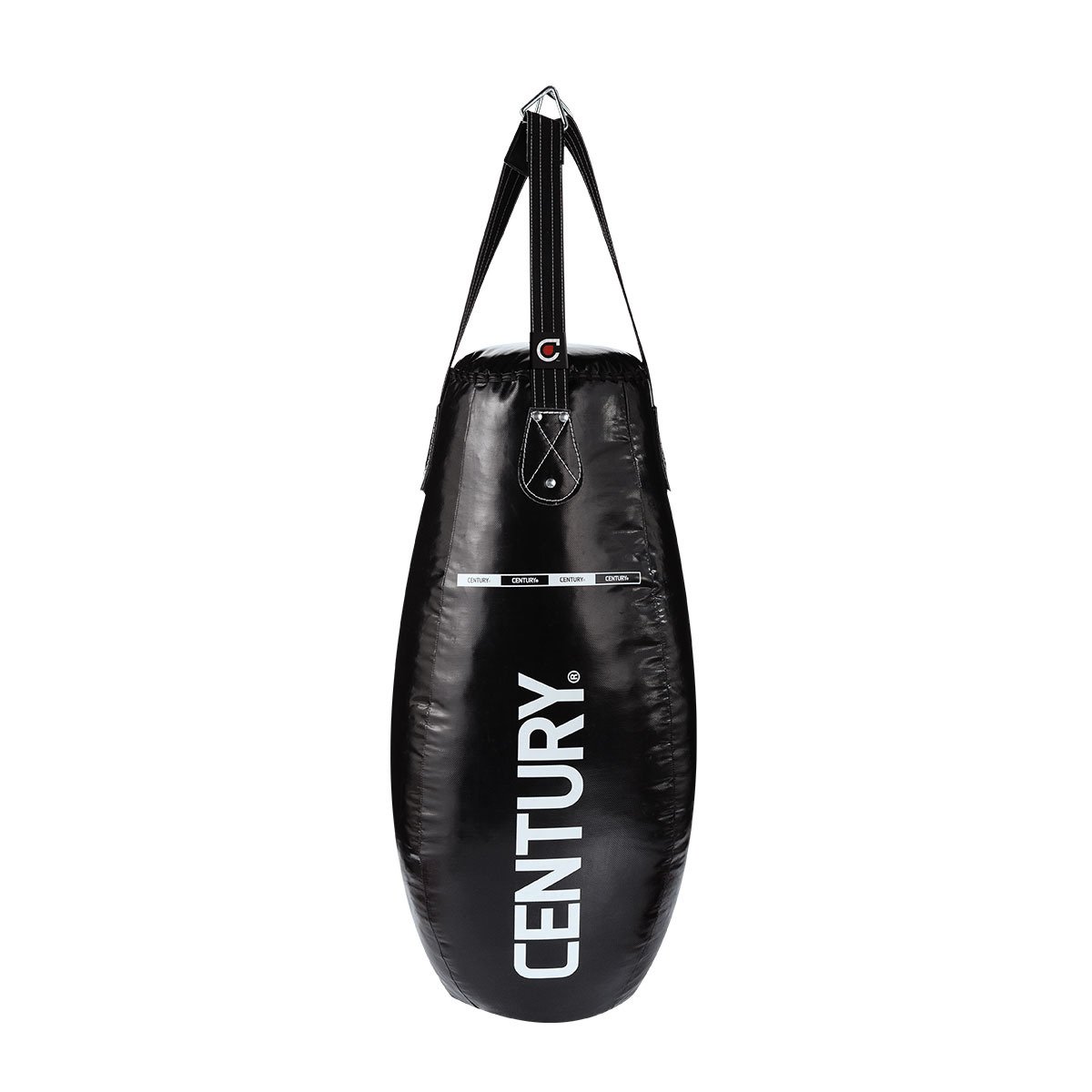 Ideal for throwing knees, elbow and punches from the clinch, the Century® Creed 60 lb. Vinyl Teardrop Heavy Bag is made of extra-thick vinyl and features a lace-top closure for durability. The contoured shape provides a unique teardrop outline for training. The bag hangs from web straps attached with leather tabs for stability.