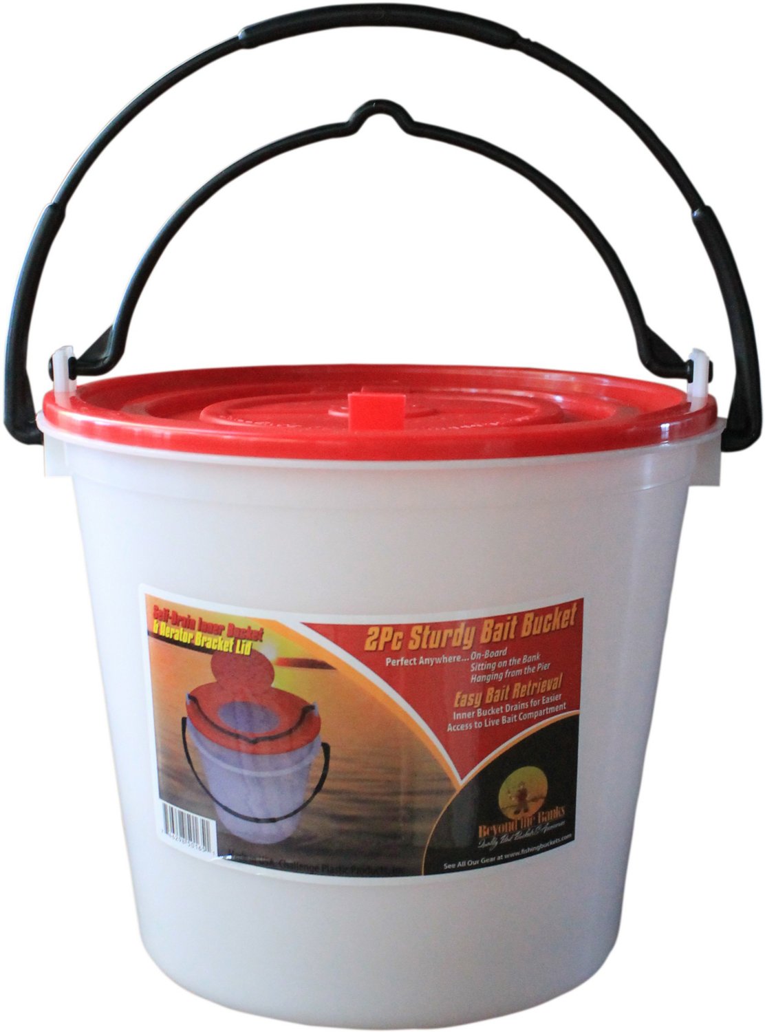 Keep bait fresh and easily accessible with the 10 qt. Bait Bucket. The bucket features an inner floating bucket that lifts out and drains from the bottom, and the 10 qt. capacity provides ample bait storage. 2-piece design.
