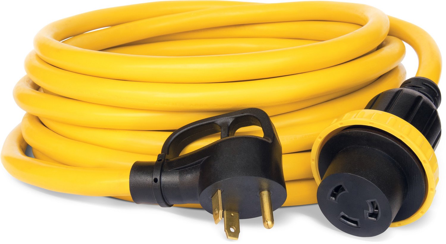 Connect your RV and generator with the Champion 30 ft 30 amp RV Generator Power Cord. This 30 amp cord provides the connection you need to power up. The thermoplastic jacket and watertight construction allow all-weather use, and the easy-to-handle contoured connectors lock in place with rotating rings.
