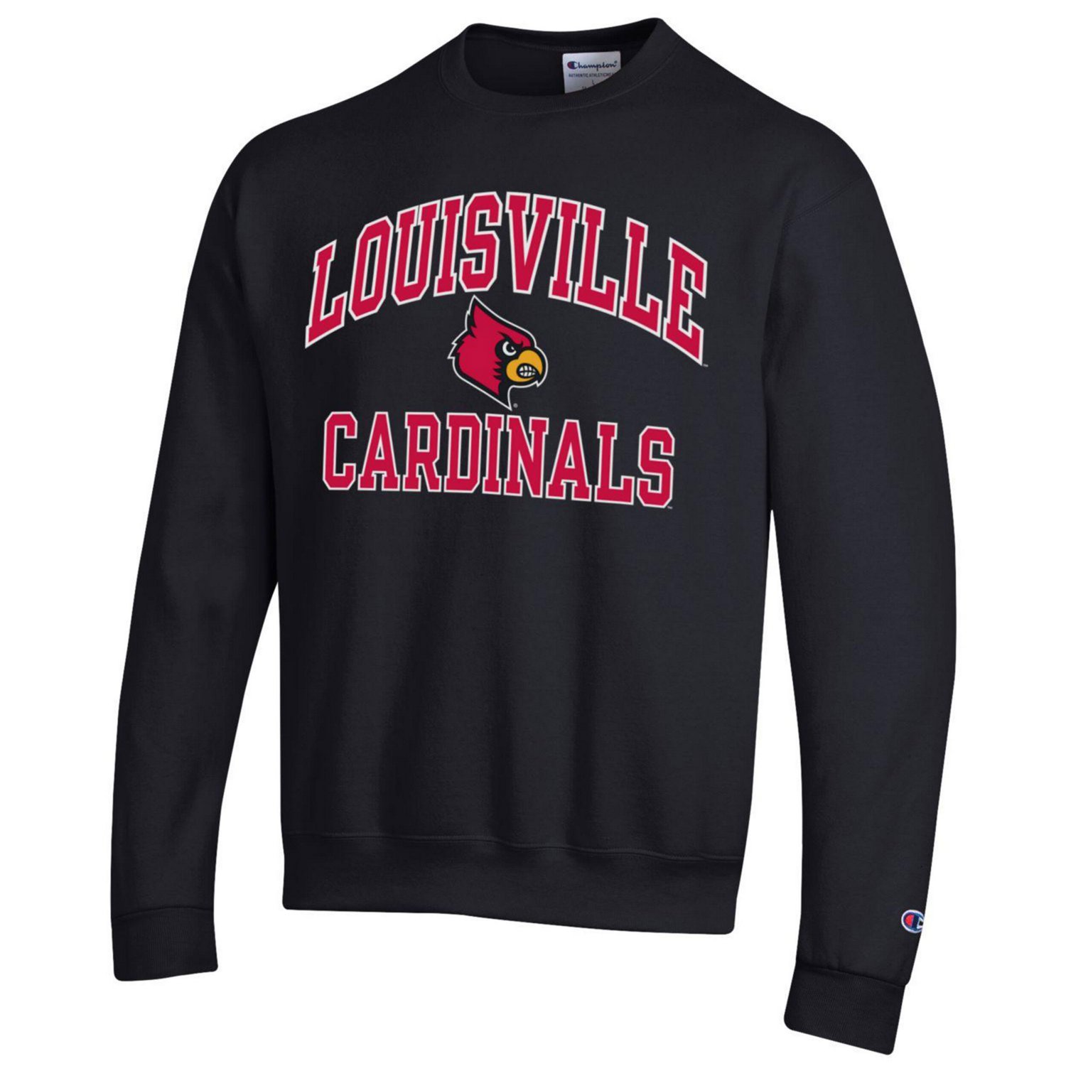 The Champion Black Louisville Cardinals High Motor Pullover Sweatshirt is the perfect way to show unwavering support for the Louisville Cardinals Made from a comfortable cotton and polyester blend this midweight sweatshirt features a fleece lining for added warmth during chilly game days Screen-printed graphics proudly display Cardinals pride while the pullover design allows for easy layering Whether cheering from the stands or showing support this sweatshirt represents the Louisville Cardinals in style