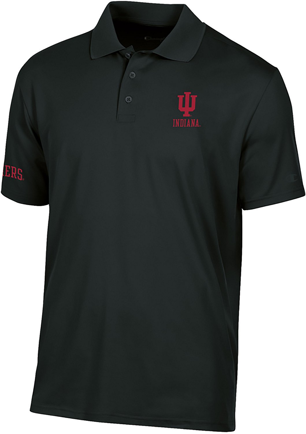 Watch the next game in comfort and style by wearing the Champion Men's Indiana Solid Polo Shirt. This polo is made of polyester and spandex jersey to offer a soft, stretchy feel, and its team graphics make it clear you're ready to celebrate each victory.