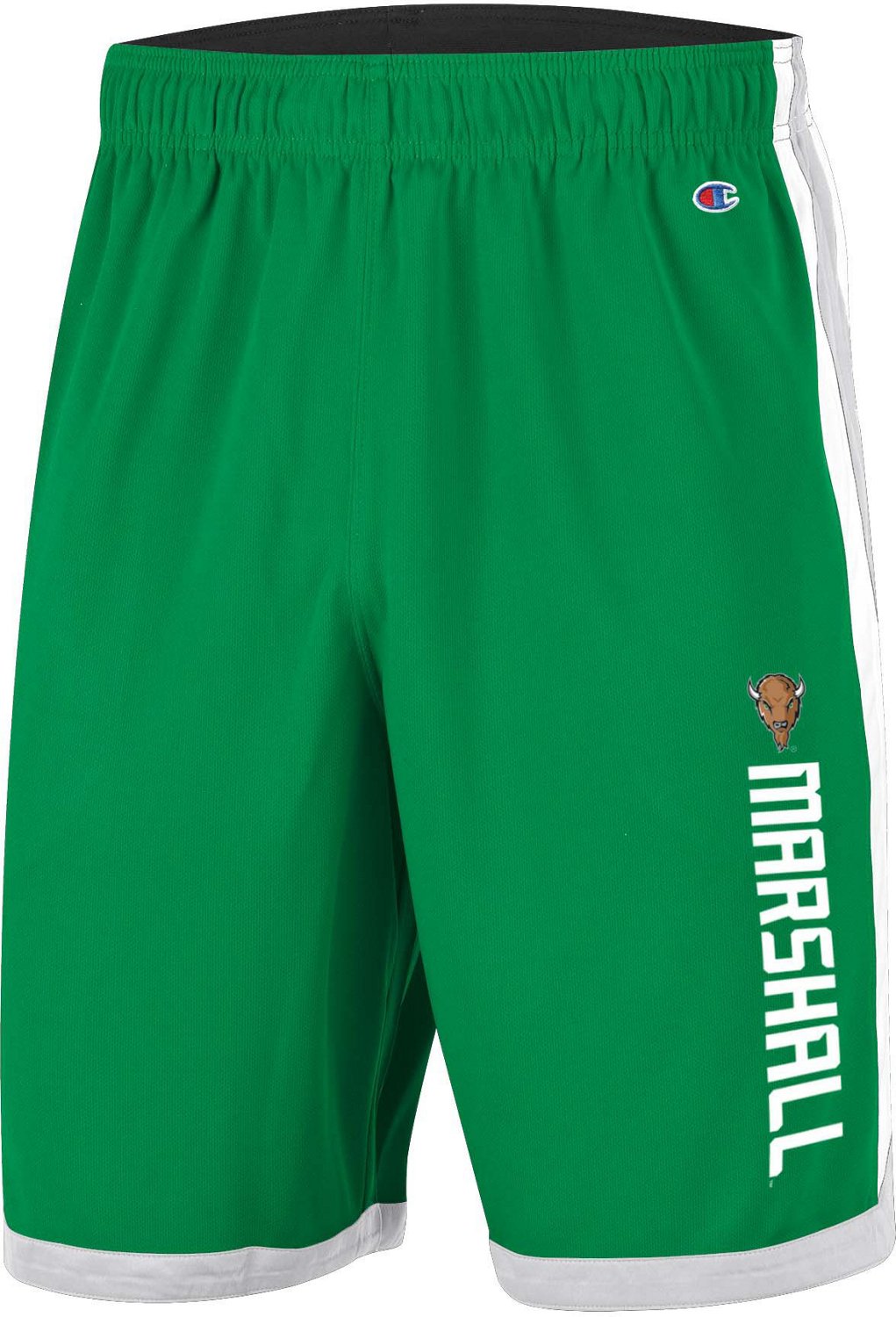 Dominate the court while wearing Champion Men's Marshall University Basketball Shorts. These easy pull-on gym shorts are made with durable polyester and feature a hand pocket to keep personal items handy. A printed team name and logo put Thundering Herd love on proud display.