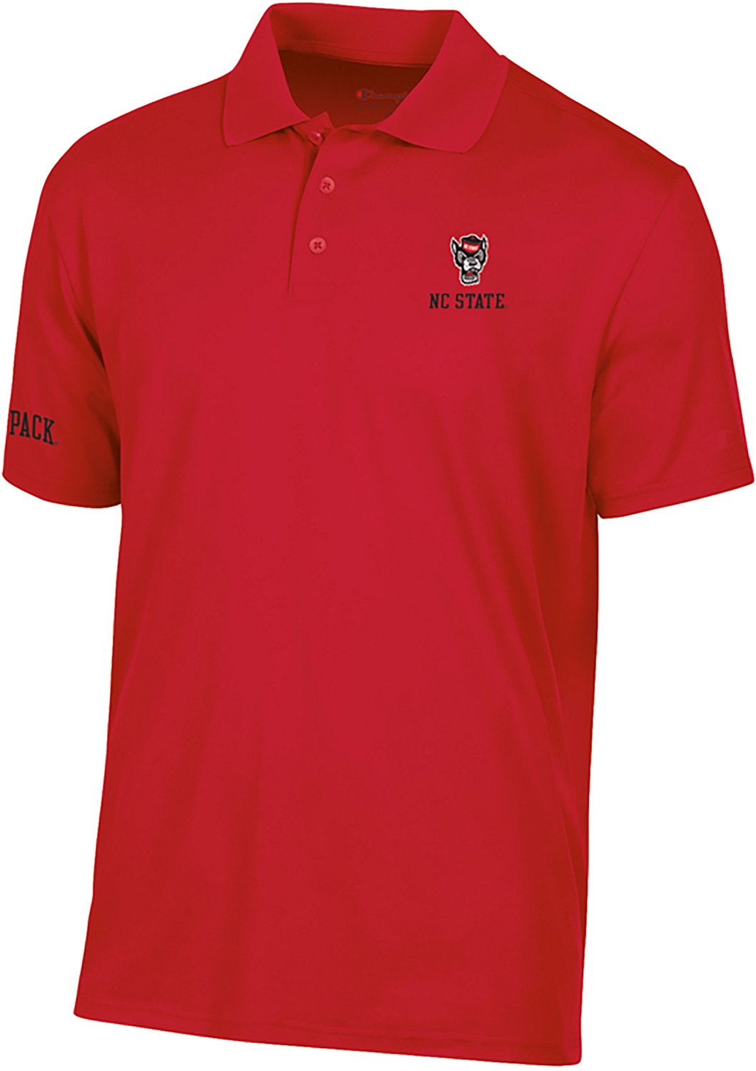 Watch the next game in comfort and style by wearing the Champion Men's NC State Solid Polo Shirt. This polo is made of polyester and spandex jersey to offer a soft, stretchy feel, and its team graphics make it clear you're ready to celebrate each victory.
