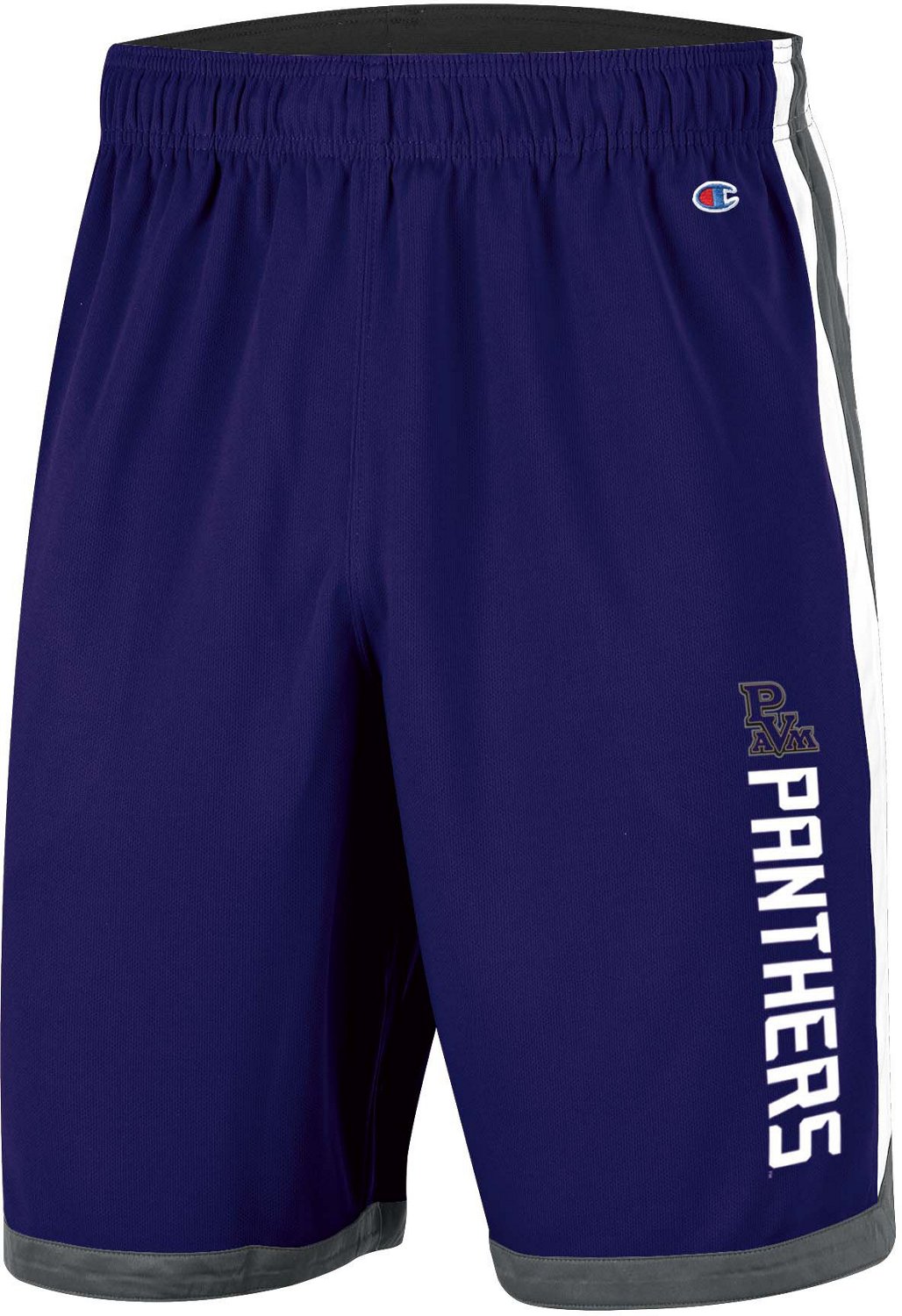 Dominate the court while wearing Champion Men's Prairie View A&M University Basketball Shorts. These easy pull-on gym shorts are made with durable polyester and feature a hand pocket to keep personal items handy. A printed team name and logo put Panthers love on proud display.