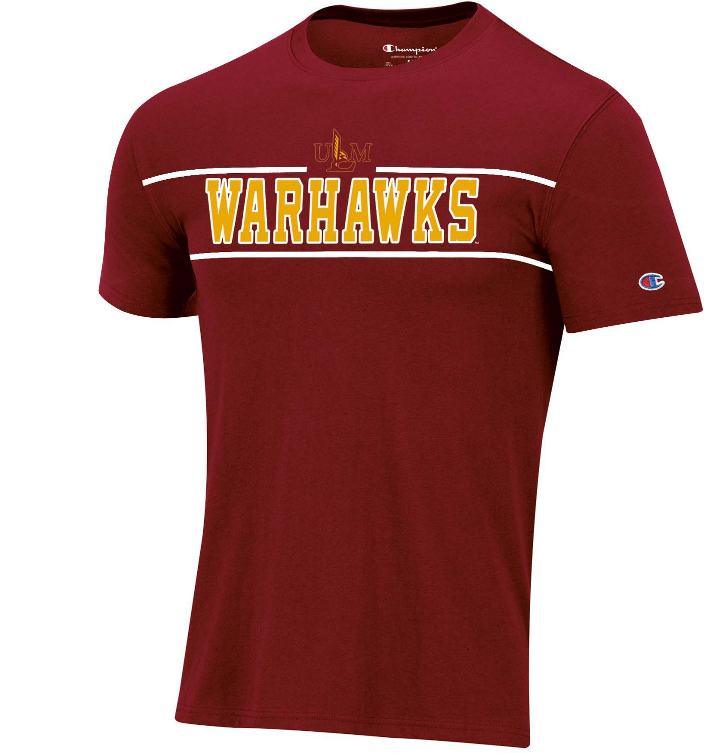 Represent the ULM Warhawks on game day with the Champion Men's University of Louisiana at Monroe Mascot T-shirt. Made of a comfortable cotton blend, this T-shirt features a screen-printed team design that shows you're a fan.