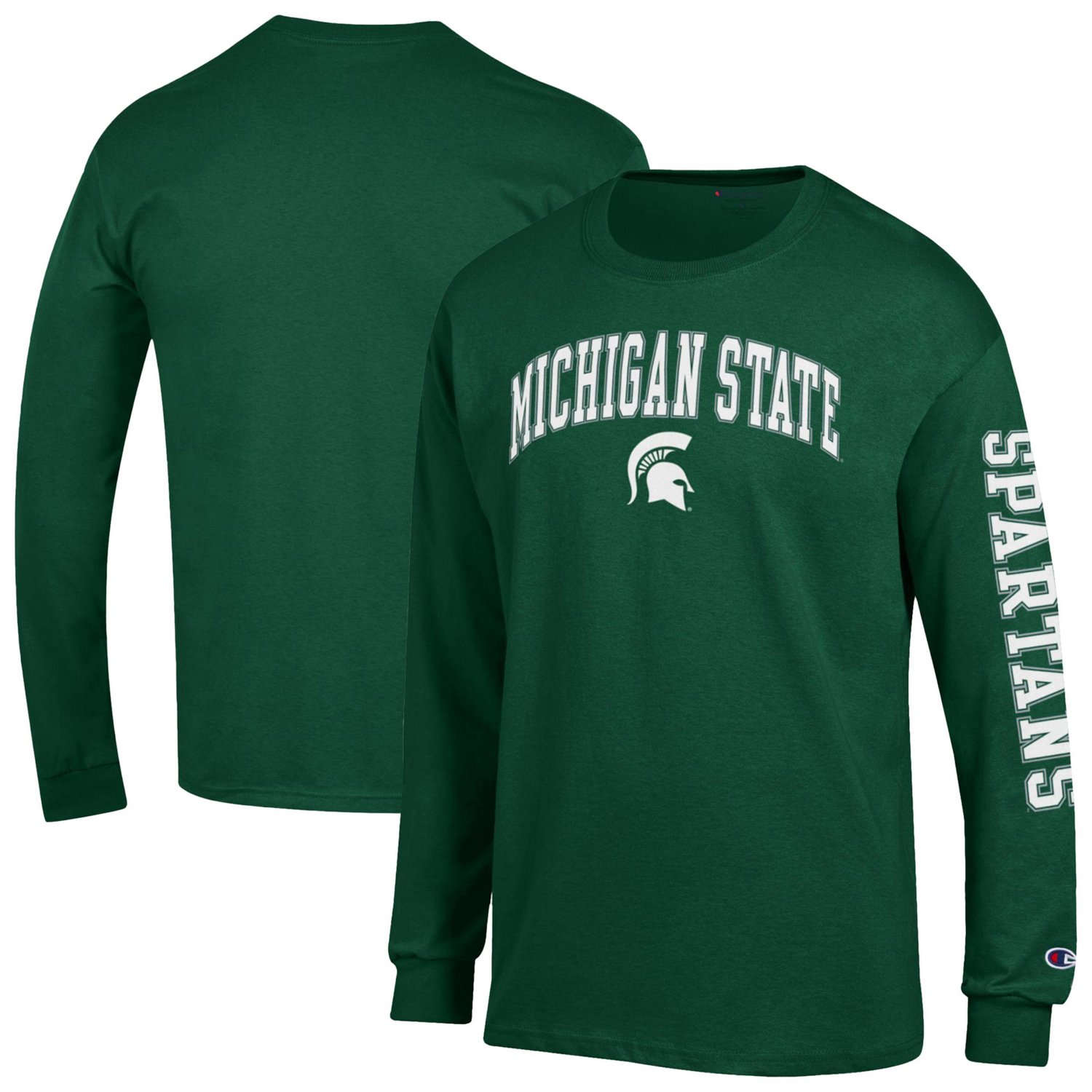 Rep your school with pride in this Michigan State Spartans Arch Over Logo 2-Hit Long Sleeve T-Shirt from Champion The classic arch over logo design lets you show off your Michigan State Spartans pride in timeless style Made with soft breathable cotton this tee will keep you comfortable whether you're cheering from the stands or just relaxing at home