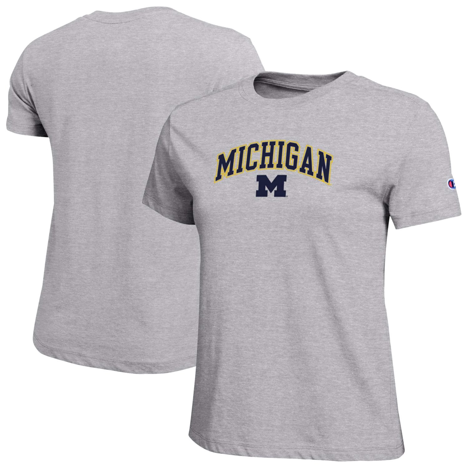 Show your unwavering support for your favorite college squad with this Michigan Wolverines Arched Over Logo T-Shirt from Champion The screen print wordmark arches gracefully over the team logo showcasing your school pride in style This tee combines breathable comfort with eye-catching design making it the perfect choice for game day or any day
