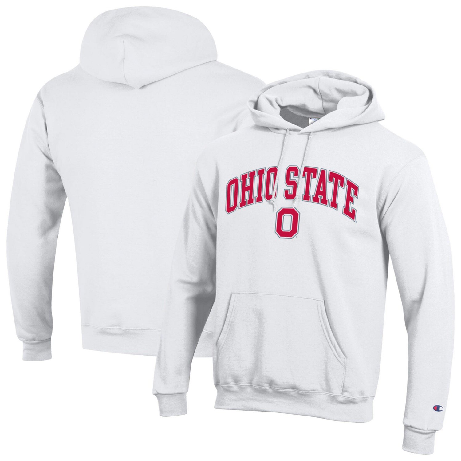 Cozy up and cheer on the Ohio State Buckeyes with this Champion Arched Logo Fleece Pullover Hoodie This midweight hoodie features a fleece lining for added warmth and comfort making it ideal for moderate temperatures An adjustable drawstring hood helps block out the elements while a front pouch pocket provides convenient storage