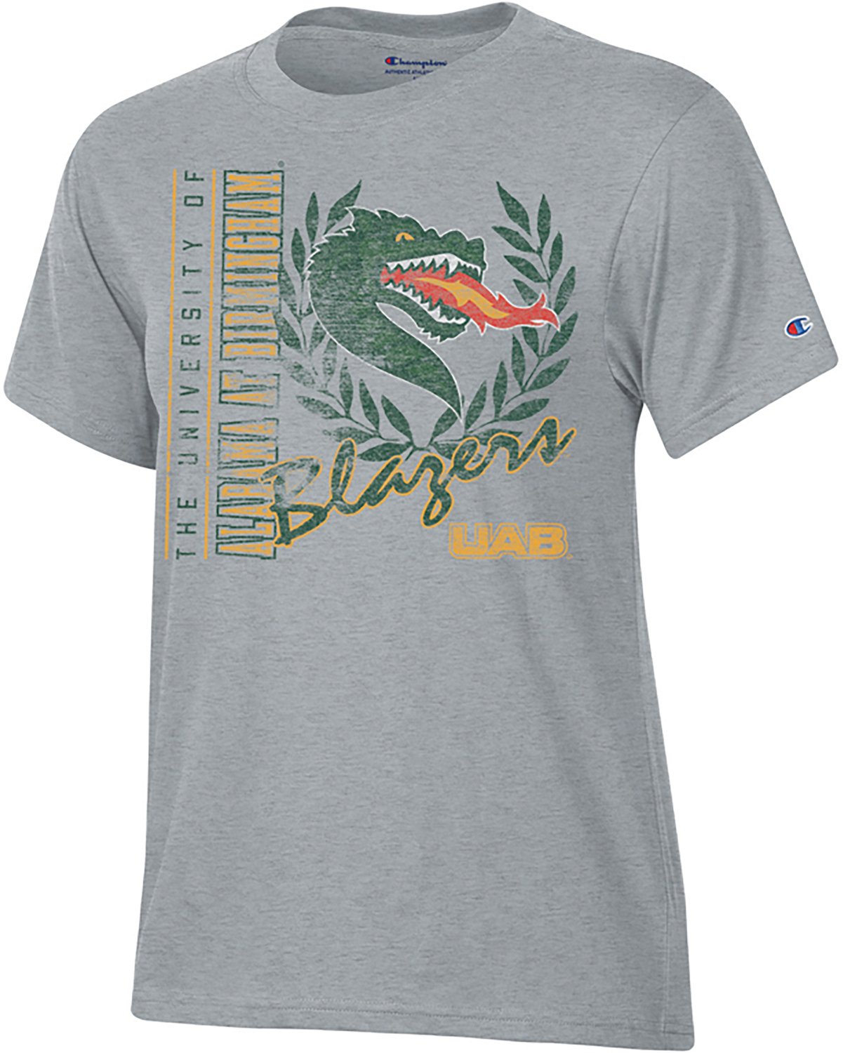 Everyone will get excited for the next game when you wear the Champion Women's Alabama-Birmingham Mascot Script Stadium T-shirt. This T-shirt is made of 60% cotton and 40% polyester to provide lasting comfort, and the team graphics helps you display your fan pride.