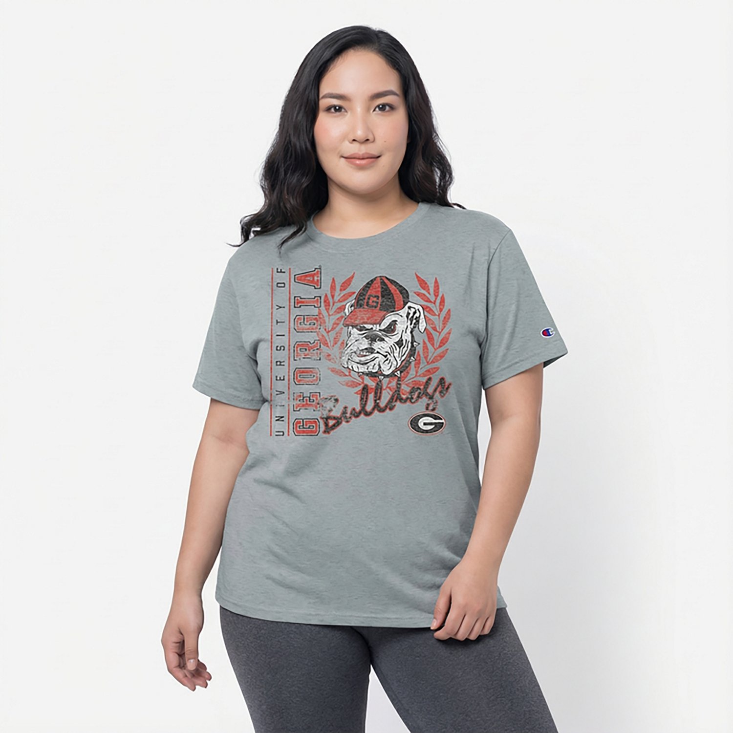 Everyone will get excited for the next game when you wear the Champion Women's Georgia Mascot Script Stadium T-shirt. This T-shirt is made of 60% cotton and 40% polyester to provide lasting comfort, and the team graphics helps you display your fan pride.