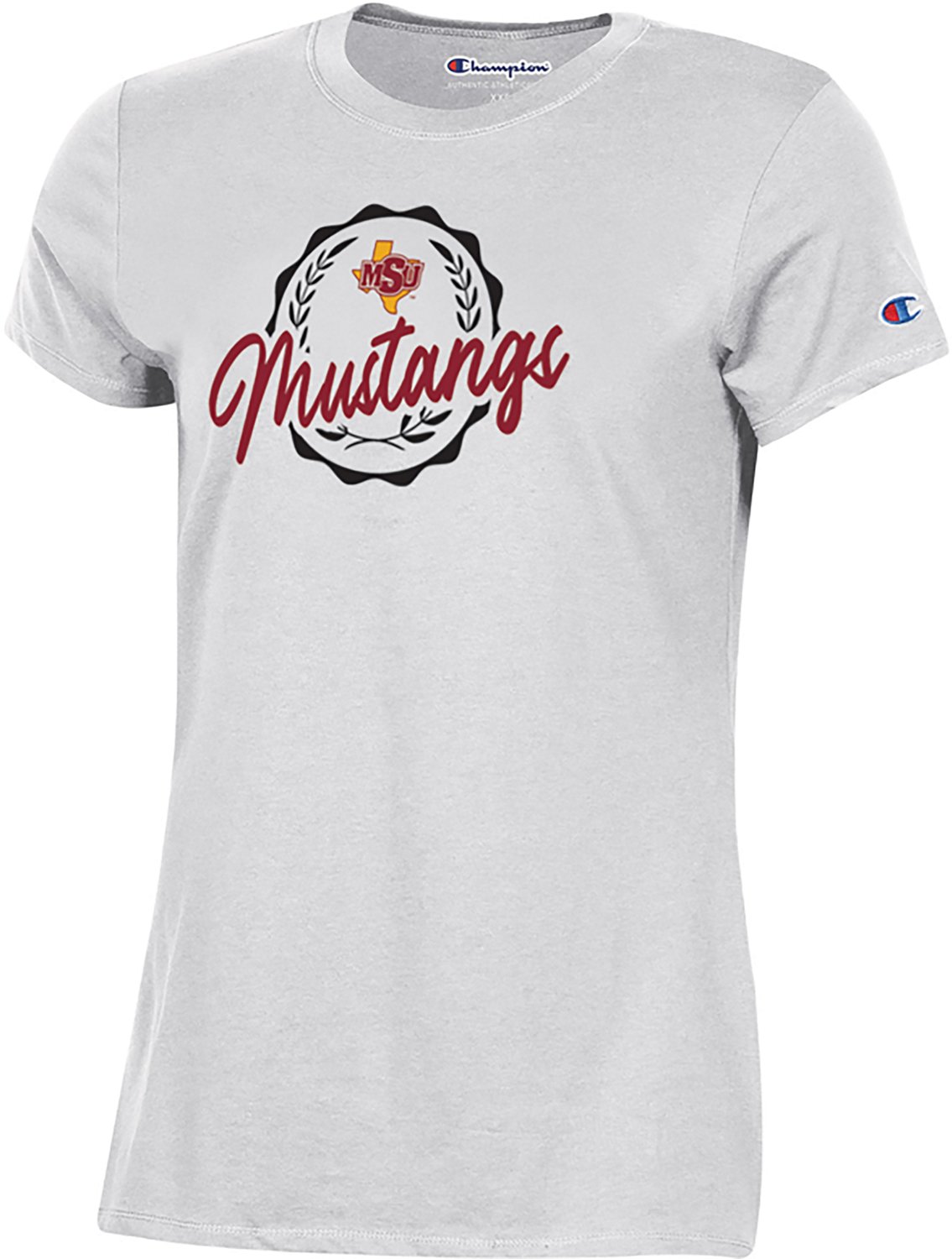 Cheer on your favorite team while wearing the Champion Women's Midwestern State Faux Crest T-shirt. The cotton and polyester construction helps keep you comfortable all day long, and the team graphic on the chest makes it clear you're a dedicated fan.