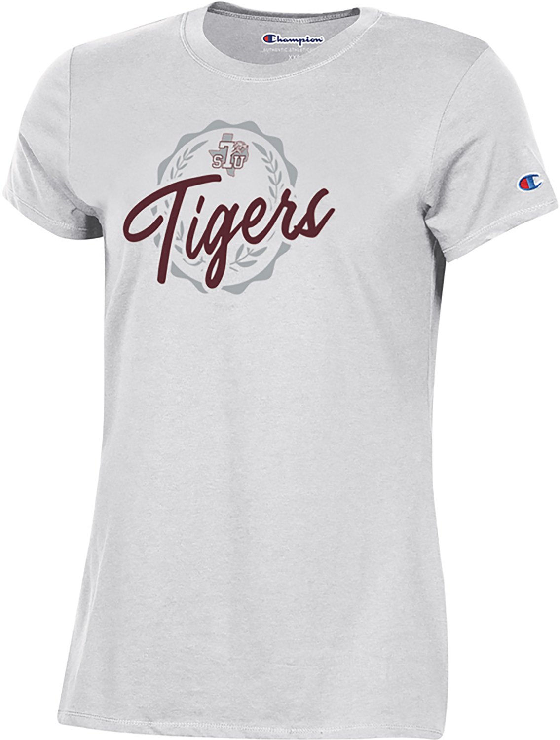 Cheer on your favorite team while wearing the Champion Women's Texas Southern Faux Crest T-shirt. The cotton and polyester construction helps keep you comfortable all day long, and the team graphic on the chest makes it clear you're a dedicated fan.