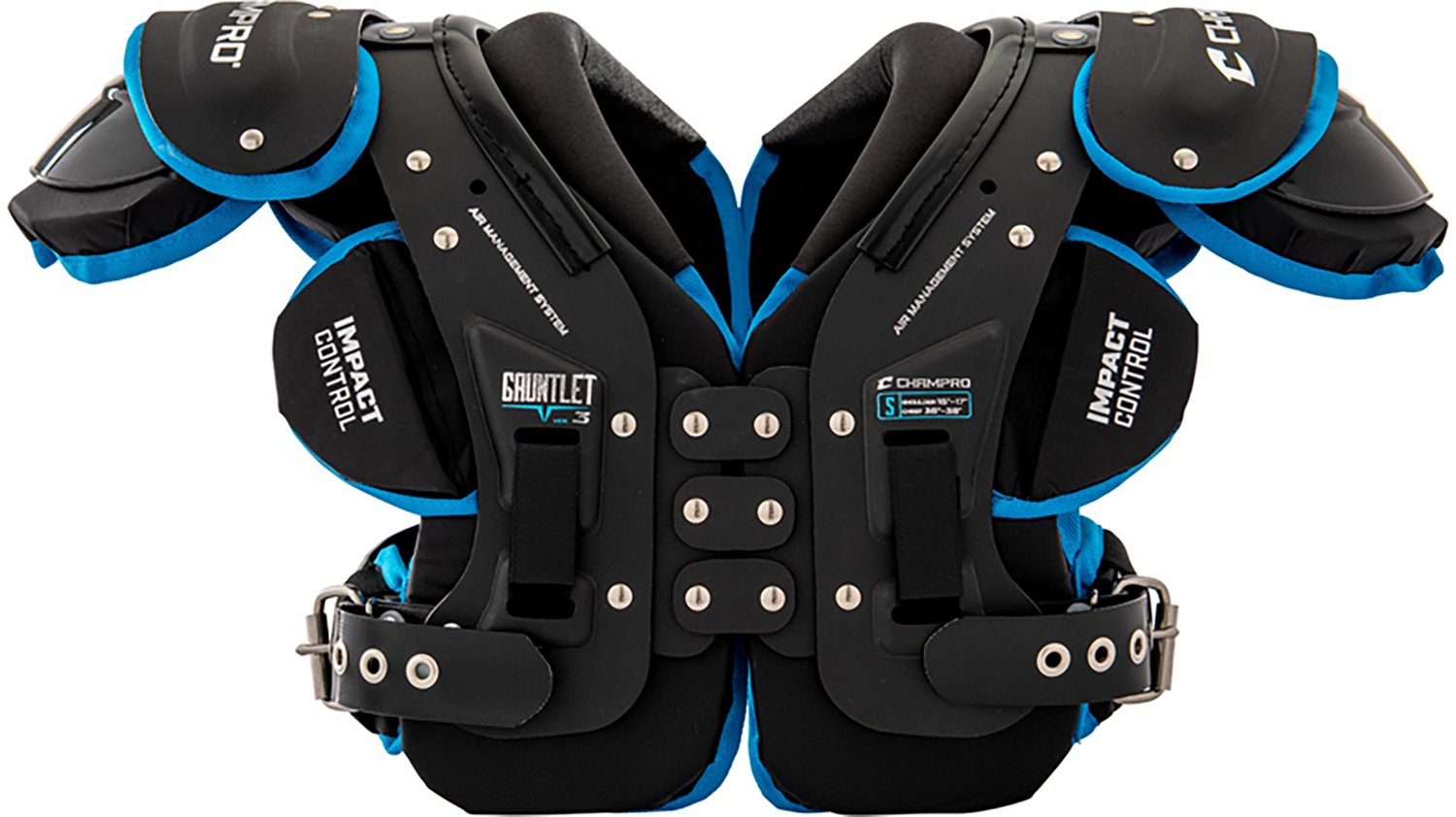 Wear the Champro Adults' Gauntlet 3 Football Shoulder Pad to keep shoulder and other upper body parts protected from harm. Featuring an air management liner system to distribute impact, these pads come with a hook and loop attachment system to ensure secure wear.