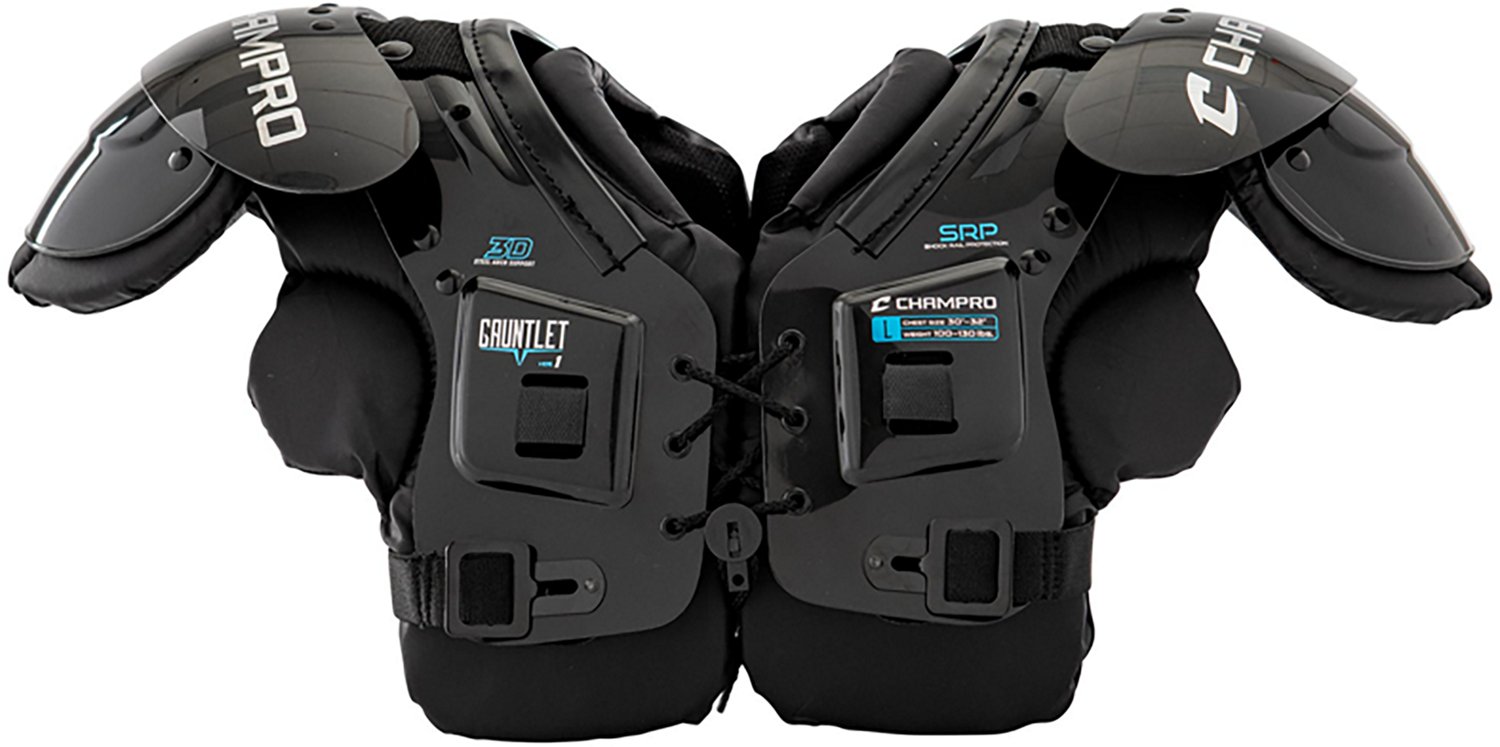 Wear the Champro Kids' Gauntlet 1 Football Shoulder Pads to keep shoulder and other upper body parts protected from harm. Featuring a Shock Rail Protection system to distribute impact, these pads come with a hook and loop attachment system to ensure secure wear.