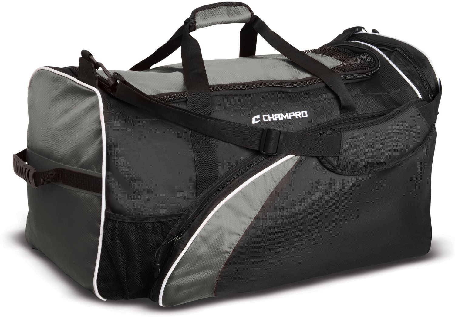 Fit all your bulky football gear in the Champro Varsity Football Equipment Bag. This oversize bag offers ample storage for large shoulder pads and a helmet, and the water-resistant exterior offers durable protection. Side pockets stow accessories, and a ventilated compartment lets your cleats breathe. Wrap-around handles and a padded shoulder strap make carrying a breeze.