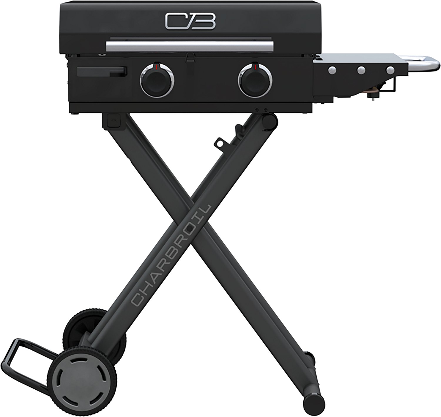 Seamlessly roll and setup the Charbroil® 22" Performance Series™ Folding Cart Portable 2 Burner Gas Griddle in your yard, at your campsite or annual tailgate party for breakfast, lunch, and dinner any time, anywhere. The hinged lid enables you to steam, melt, or warm your cheeseburgers and hot dogs all day long. The built-in wind blockers will efficiently help you battle any unexpected wind gusts and keep the good times rolling by conserving fuel and maintaining high and even temps. From fish tacos to hibachi-style fried rice, you'll love cooking on the anti-warping griddle top for optimal cooking performance whether you're starting with fresh or frozen food. If you’re looking for a portable, easy-to-roll griddle to take with you wherever you go, this is the one for you.