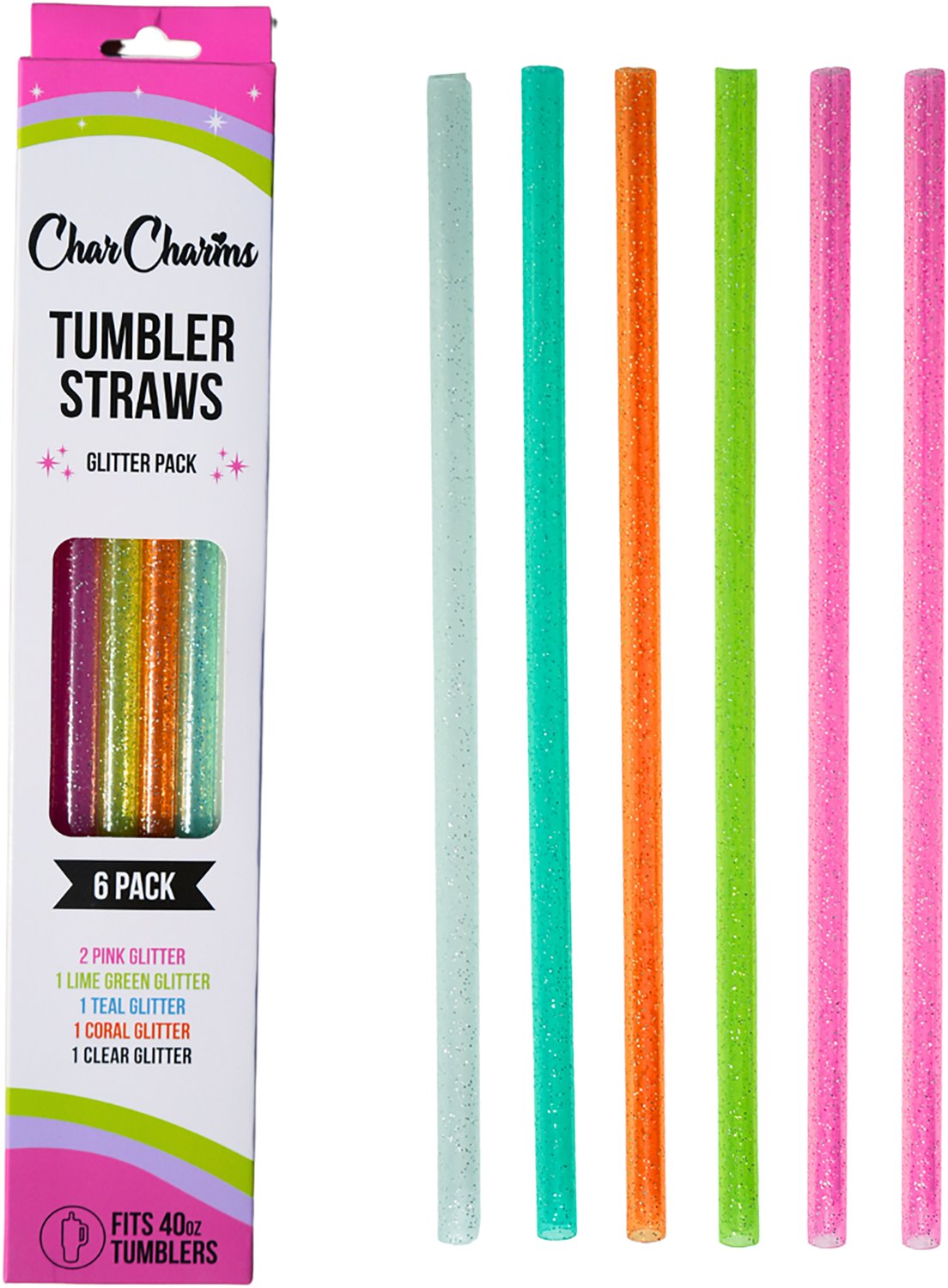 Stay hydrated with the CharCharms 40 oz. Glitter Straws 6-Pack. The reusable build is best used for 30-ounce tumblers, and the glitter design adds a fashionable touch. The straws are dishwasher safe for easy cleaning.