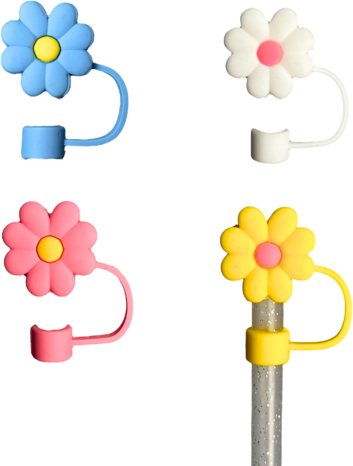 Keep warm weather vibes going all year with the CharCharms Flower Straw Toppers 4-Pack. These silicone charms are easy to use and dishwasher safe. Slide the loop onto your 10-millimeter straw and pop the topper onto the straw to protect your straw from dirt and germs while customizing it to reflect your personality.