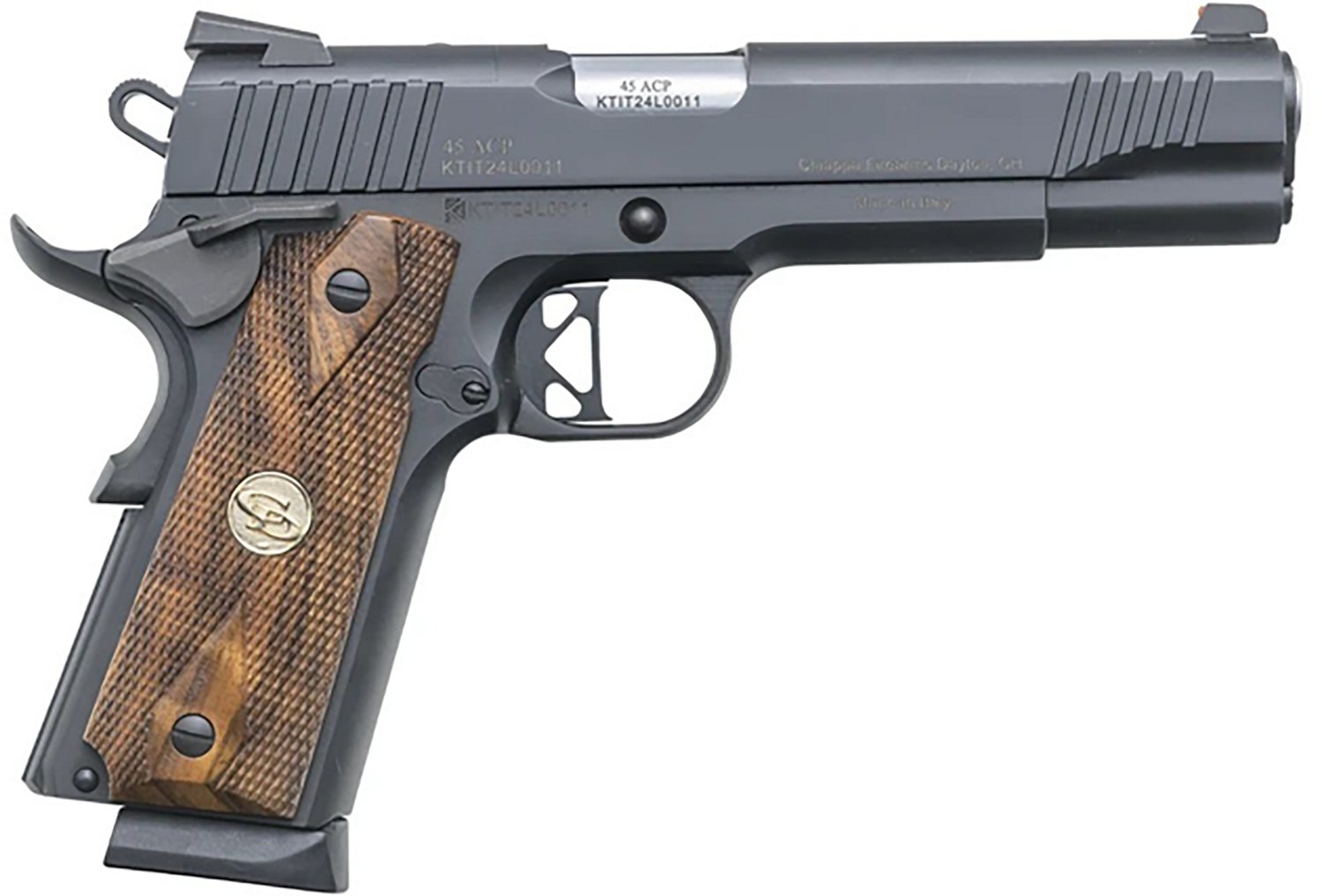 The Charles Daly 1911 Superior .45 ACP Pistol is single action and has an 8+1-round capacity. It's built with a steel frame, diamond checkered walnut grip and a fiber optic rear sight with adjustable windage. Manual and internal safeties and auto ejection extraction complete the design.