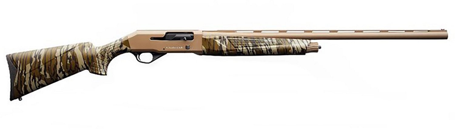 The Charles Daly 601 Field 12 Gauge Semi-Auto Shotgun has a 28-inch barrel with a 4+1-round capacity and a Mossy Oak Bottomlands camo stock. This firearm also has a manual safety, a curved trigger and a fixed fiber optic sight in the front.