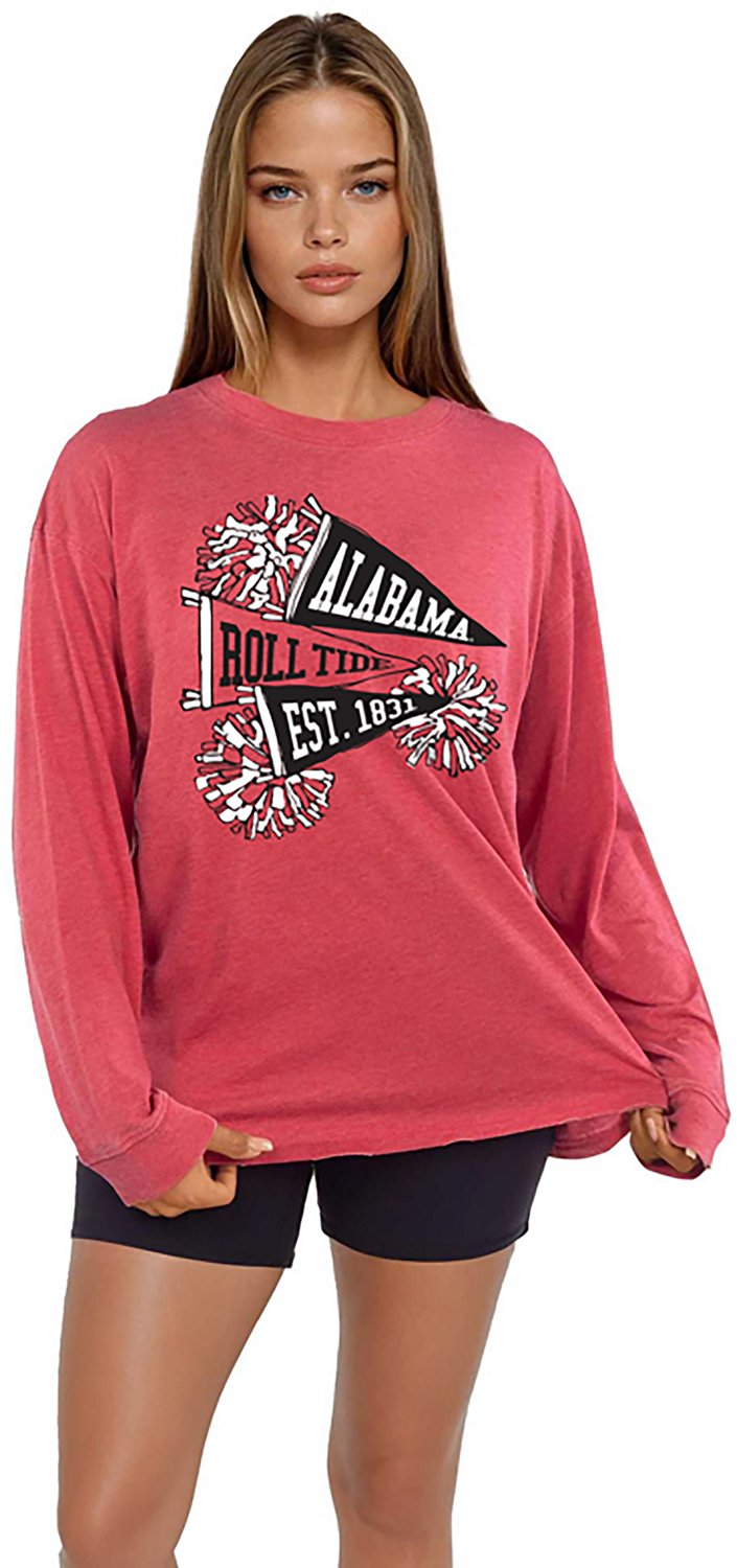 Put your fan pride on display when you wear the Chicka-d Women's Alabama Pom Pom Timeless Long Sleeve T-shirt. The cotton and polyester construction provides comfort and durability, while the screen-printed team graphic showcases your fandom.