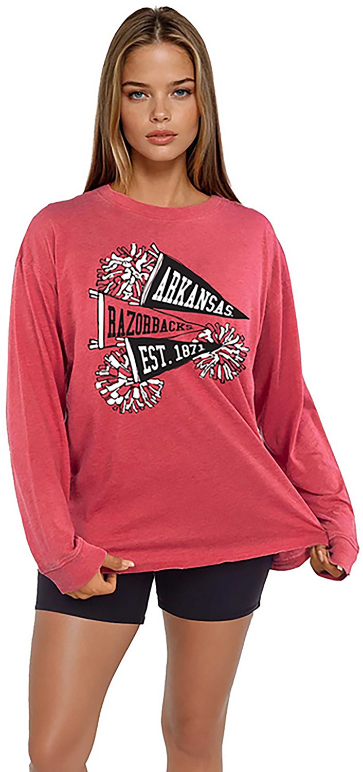 Put your fan pride on display when you wear the Chicka-d Women's Arkansas Pom Pom Timeless Long Sleeve T-shirt. The cotton and polyester construction provides comfort and durability, while the screen-printed team graphic showcases your fandom.