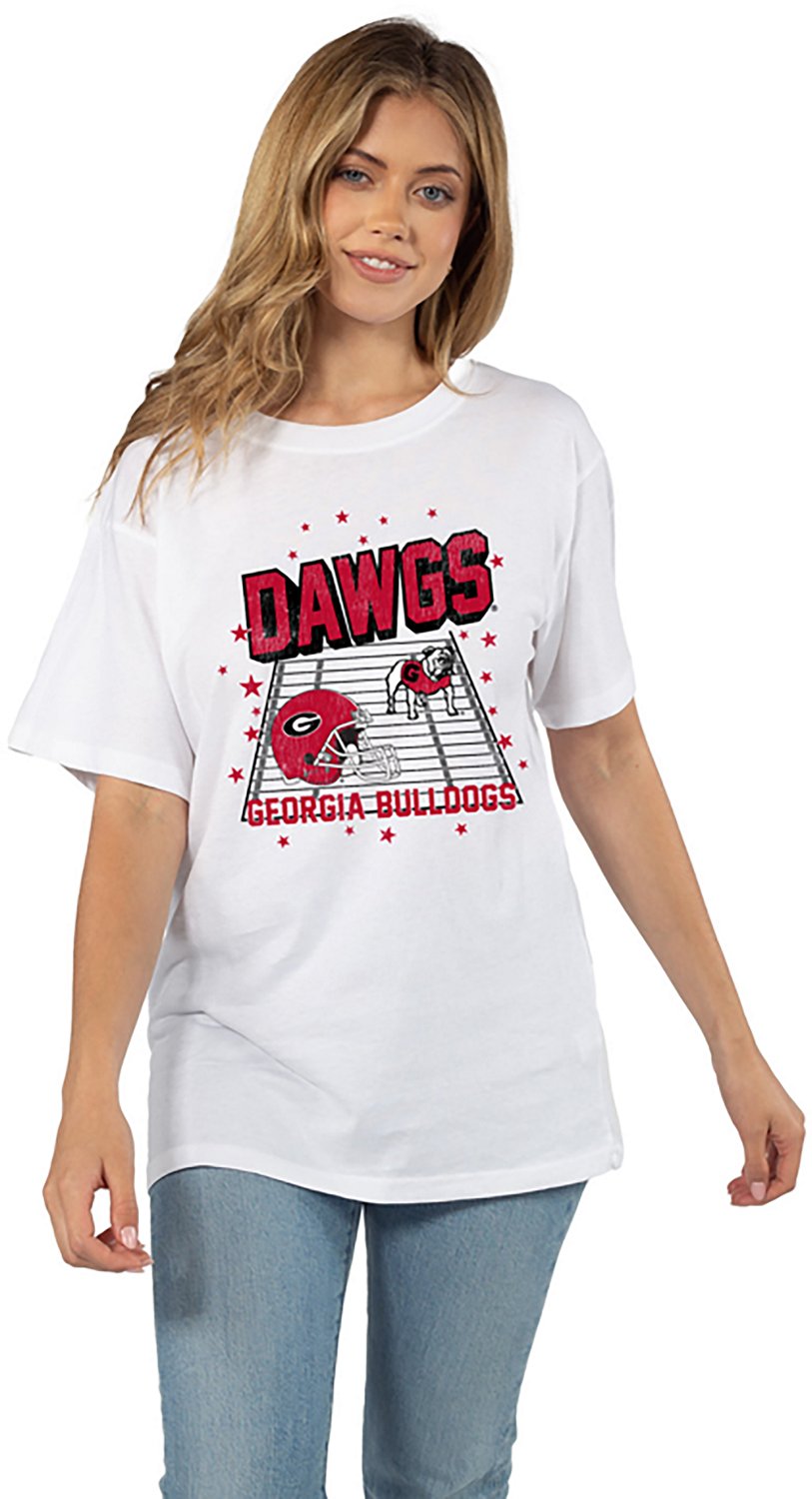 Make sure everyone knows you're a dedicated fan when you wear the Chicka-d Women's Georgia Take The Field Effortless T-shirt. The cotton and polyester construction helps keep you comfortable, and the screen-printed team graphic showcases your fandom.