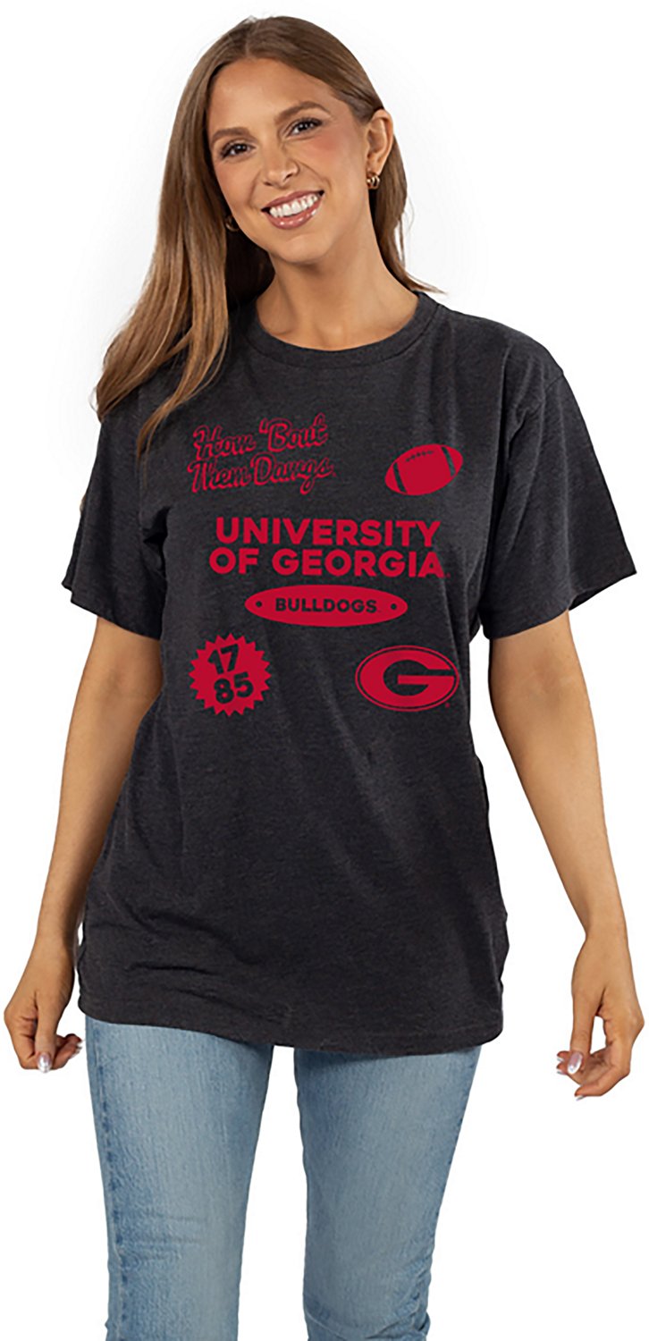 Make sure everyone knows you're a dedicated fan when you wear the Chicka-d Women's Georgia Two-A-Days Effortless T-shirt. The cotton and polyester construction helps keep you comfortable, and the screen-printed team graphic showcases your fandom.