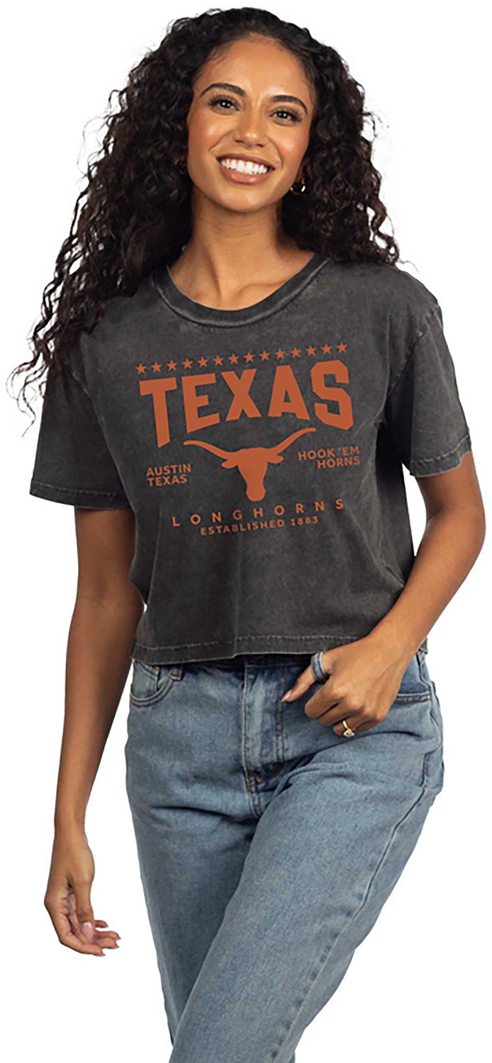 Make sure everyone knows you're a dedicated fan when you wear the Chicka-d Women's Texas Locker Room Short N Sweet Crop T-shirt. The cotton construction helps keep you comfortable, and the screen-printed team graphic showcases your fandom.