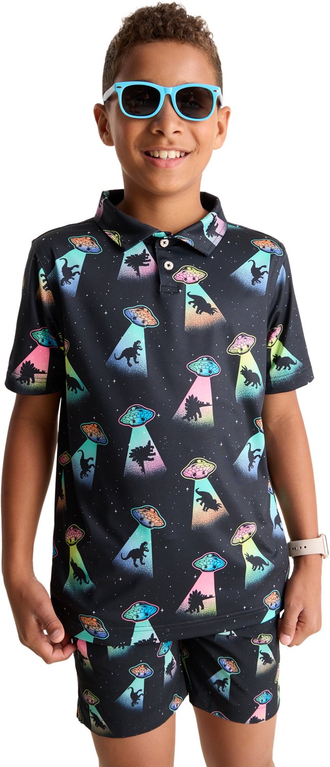 Travel around the stars with the Chubbies Boys' The Beam Me Up Polo Shirt. The polyester and spandex material provides a comfortable feel, while the UPF 50+ sun protection shields against harmful UV rays. Built-in moisture wicking technology helps keep you cool and dry, and the allover print adds a stylish look.