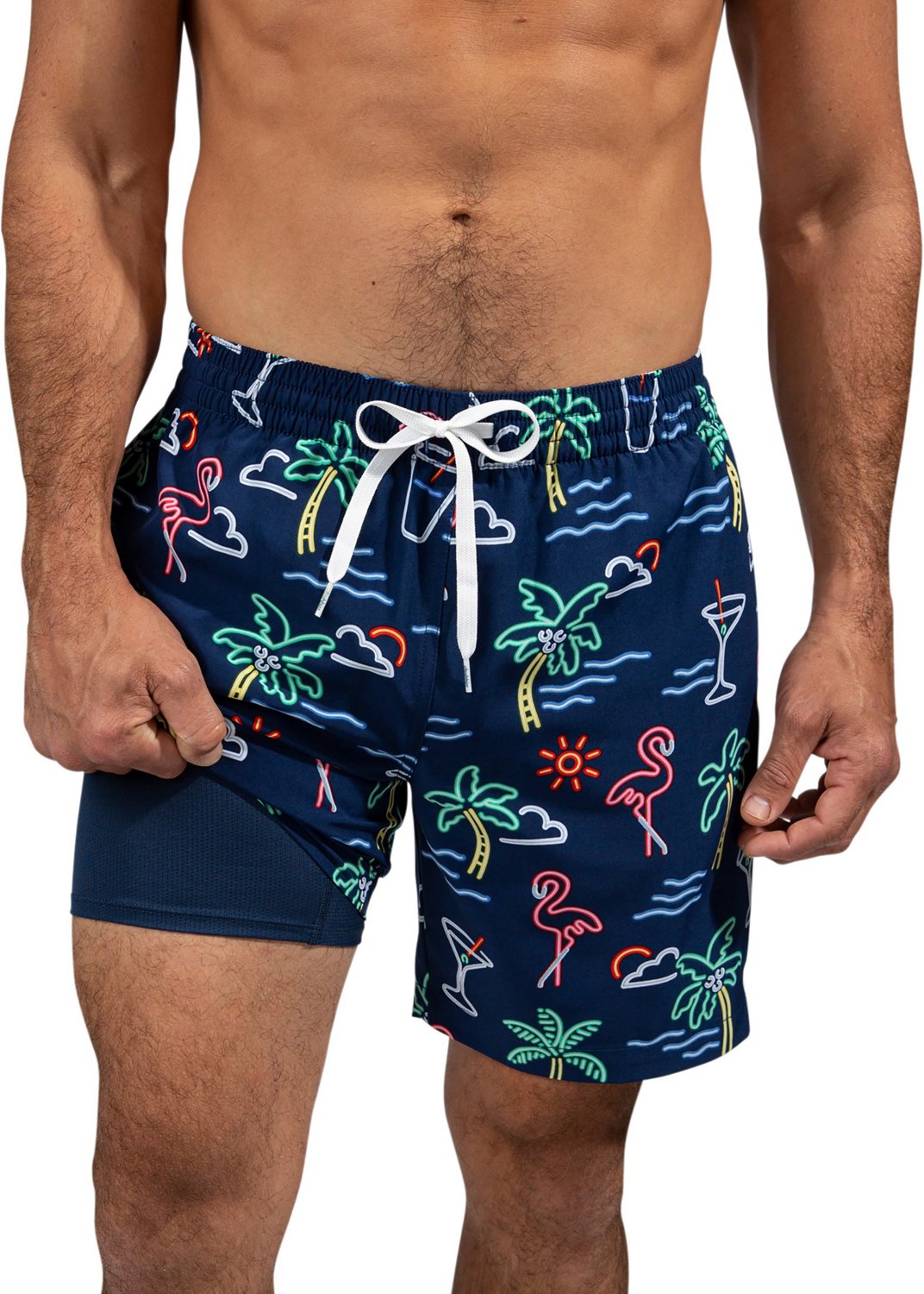 Get away for the day with the Chubbies Men's Neon Lights Lined Stretch Swim Trunks 5.5 in. The polyester and spandex material provides comfort, while the anti-chafe compression liner offers breathability. The 4-way stretch technology promotes mobility, and the unique design delivers a stylish look.