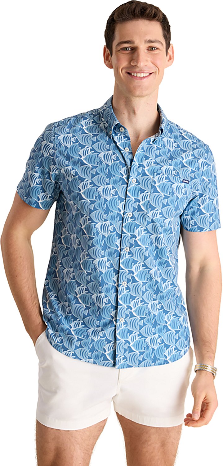 Obtain versatile style and all-day comfort with this Chubbies Men's The Aquaculture Performance Friday Shirt. It is made of 86% polyester and 14% spandex for a flexible fit that is still durable, and the shirt has a full button front so you can dress up or dress down by undoing a few buttons.