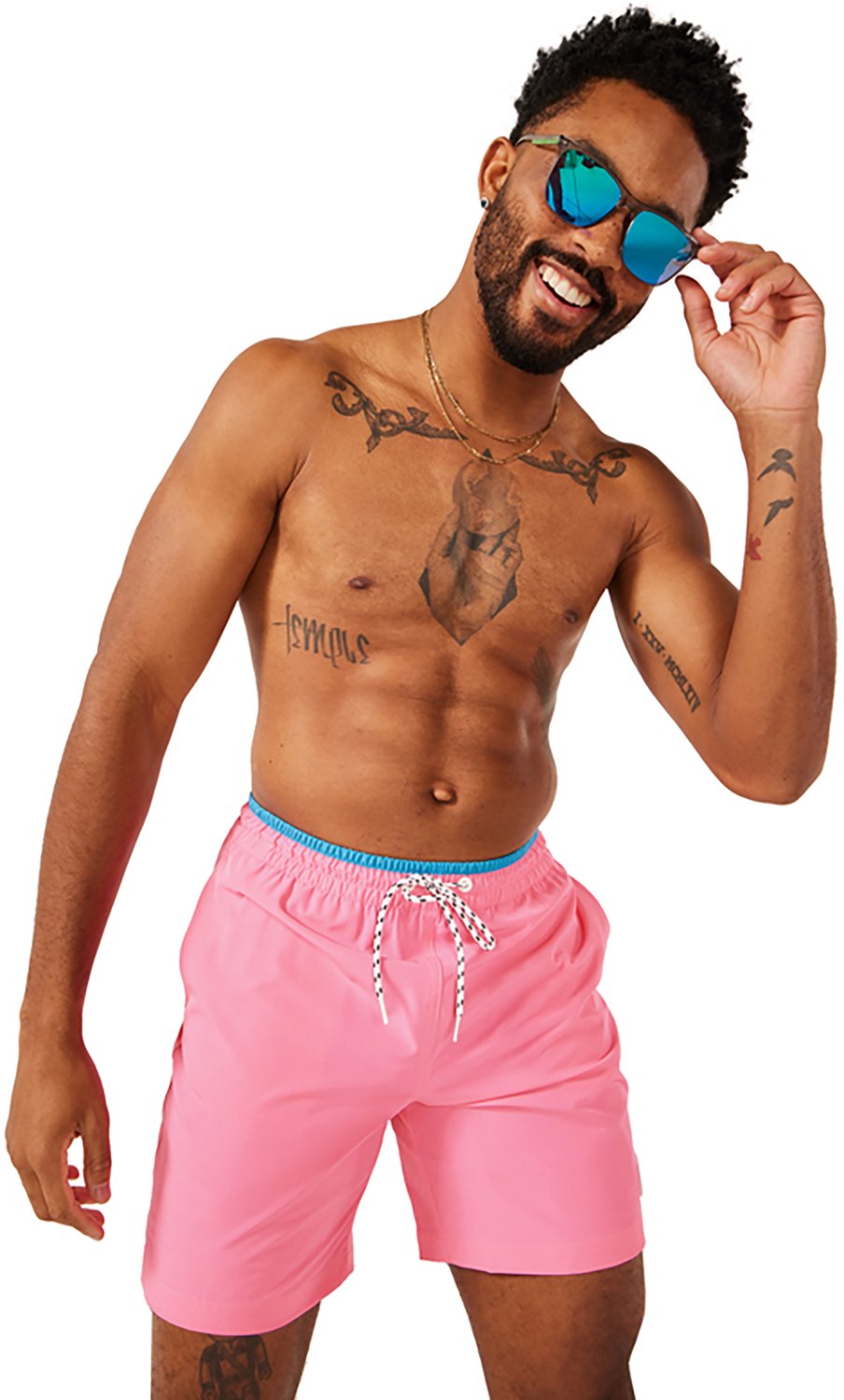 Bring style and comfort to the water with these Chubbies Men's The Avalons Classic Swim Trunks 7 in. They are made of 92% polyester and 8% spandex for durability and a flexible fit, and the trunks have a quick-drying shell so you can go indoors without making a puddle.