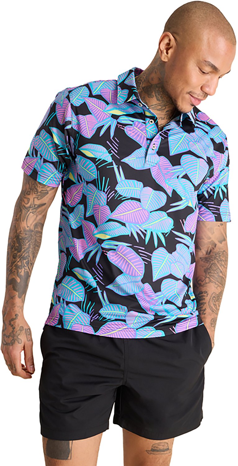 Bring fun style anywhere from the office to the barbecue with Chubbies’ Men's The Fluorescent Funk Performance Polo Shirt. It is made of 90% polyester and 10% spandex for a stretchy and breathable fit, and the palm graphic design adds an eye-catching look. The moisture-wicking technology helps keep you dry.