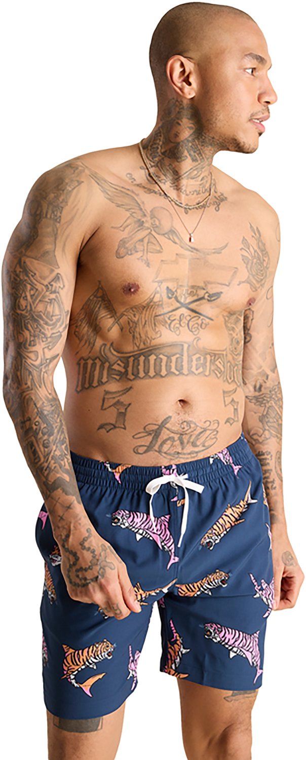 Stay active and comfortable this summer with the Chubbies Men's The King of the Seas 7" Classic Swim Trunk. The polyester/spandex material offers the resiliency needed for frequent use, and the antichafe liner is in place to limit skin irritation. The ultra-quick drying shell provides for a relaxed wearing experience when not in water, and wearers can figure out their preferred secure fit with the elastic waistband and built-in drawstring.