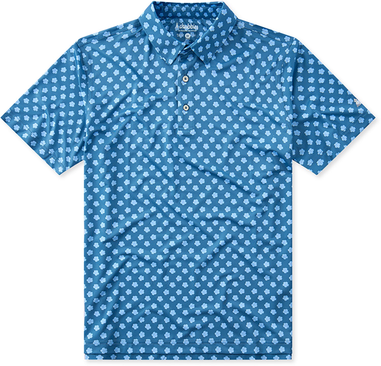 Deliver style from the BBQ to the golf course in this Chubbies Men's The Pushin' Up Daisy Performance Polo. It is made of 90% polyester and 10% spandex for durability and a stretchy fit that moves with you, and the polo features lightweight moisture-wicking fabric to help keep you cool and comfortable throughout the day. The loose fit can be tucked in or left out.