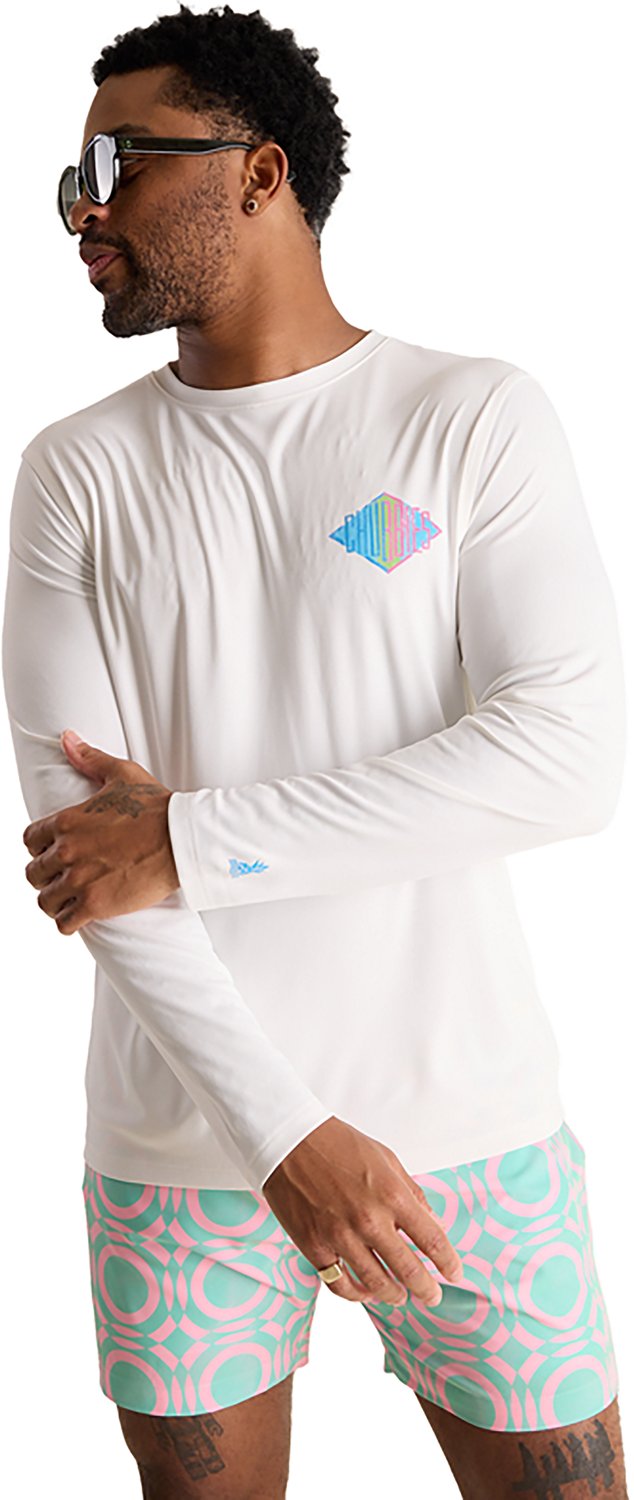 Stay cool and safe from the sun outdoors with this Chubbies Men's The Reflector Sun Crew Neck T-shirt. The lightweight shirt is made of 100% polyester for breathability, and it delivers UV protection to help block the sun's rays.