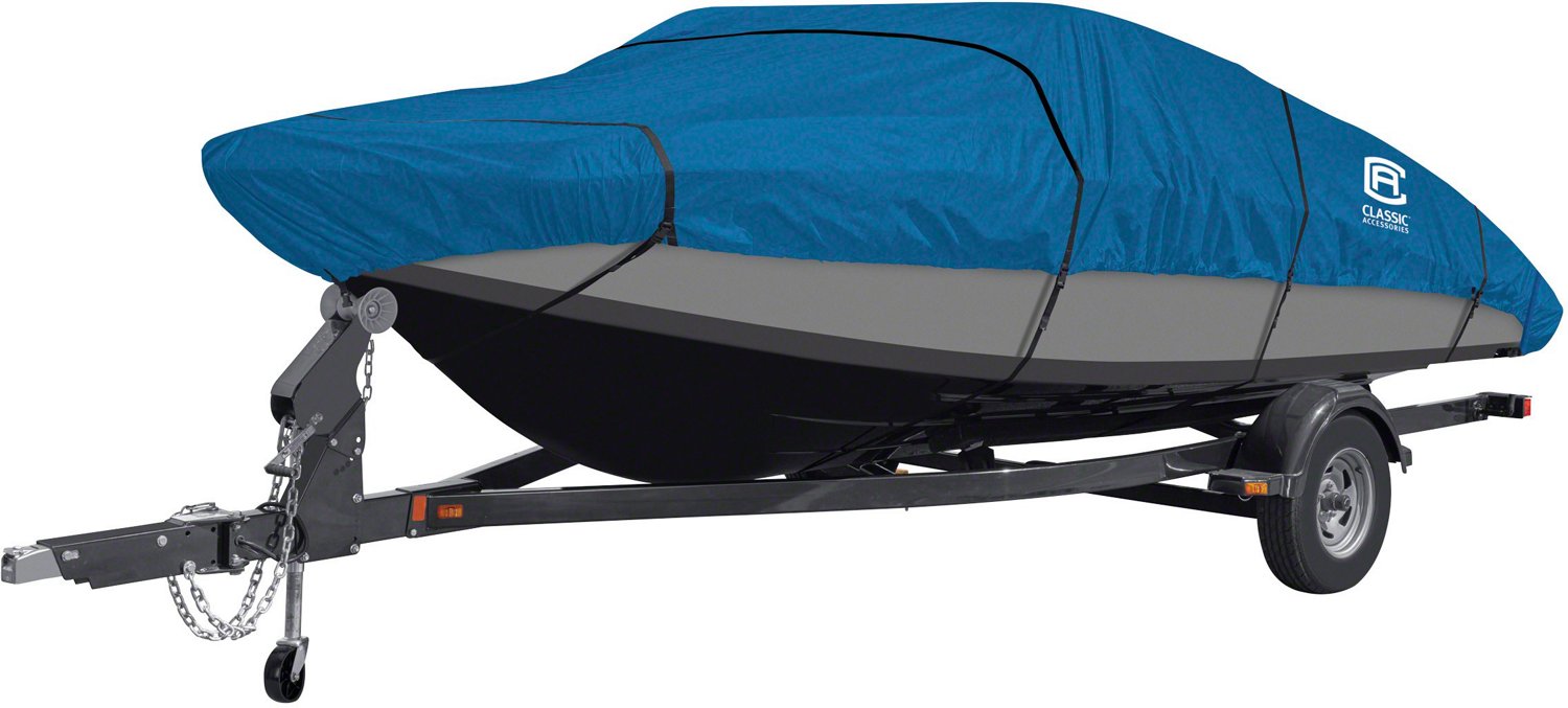 Protect your vessel with this Classic Accessories Stellex Model AA Boat Cover. Crafted from durable Stellex™ polyester fabric, this boat cover provides weather and UV protection as well as mildew resistance. It's designed to fit boats measuring 12 to 14 feet and uses a convenient strap and buckle system to make setup easy. This cover will even fit boats that have a windshield and/or other accessories.