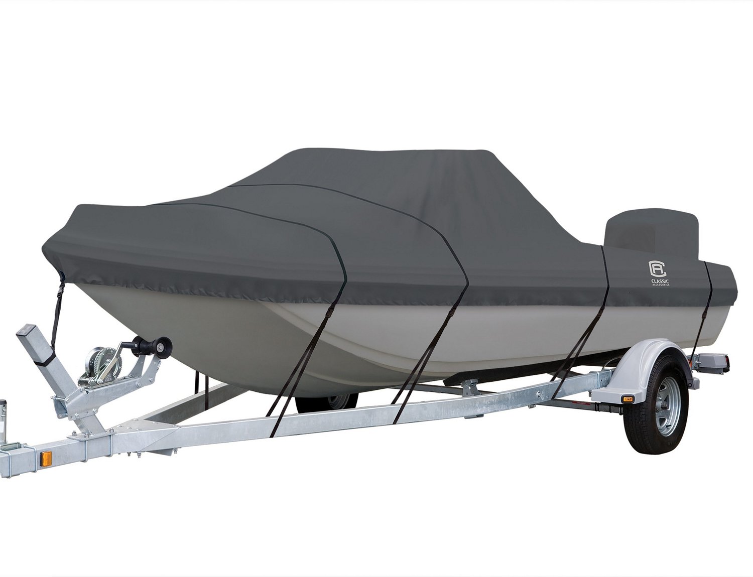 With the Classic Accessories StormPro Tri-Hull Outboard Boat Cover, you can feel good knowing your boat is protected. This cover is made from heavy-duty fabric and coated with special technology to resist water, mildew, UV rays and weather. It also has air vents to help with wind pressure and a support pole to prevent water from pooling.