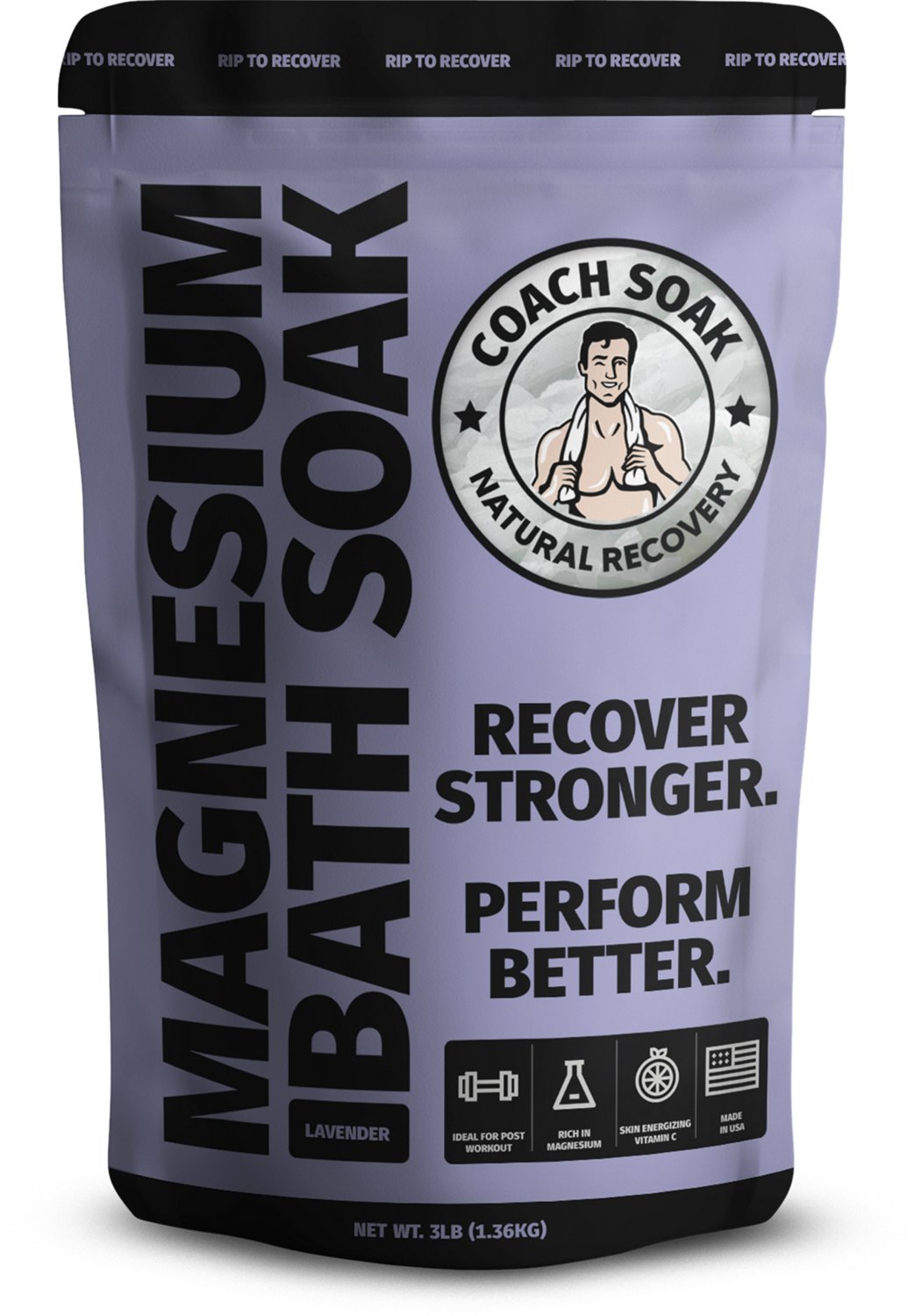 Take care of your body before your next training session with the Coach Soak Bath Salts. The fast-dissolving magnesium provides ease for sore muscles, ensuring better recovery and performance, and the calming lavender scent adds a pleasant touch. The vitamin C crystals provide soft skin and prevents dryness, and the 100% essential oils build includes peppermint to help energize your body.