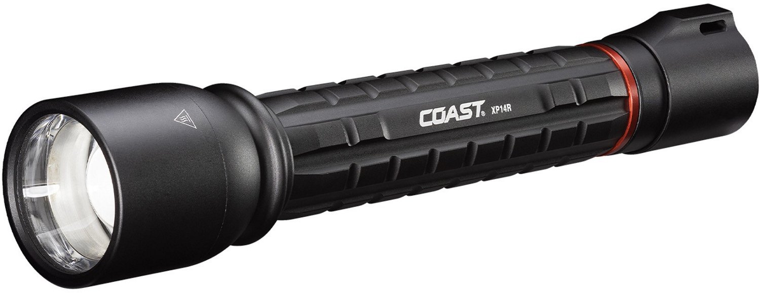 Use the Coast XP14R Rechargeable 4,000 Lumen Flashlight to light up your space when you need it. Featuring an all aluminum frame for durability, this flashlight comes with five light modes, including Turbo, Moon Glow, Pure Beam and Bulls-Eye.