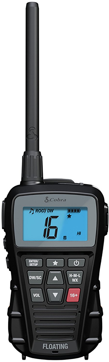 Stay in contact when you're out on the water with the Cobra Bluebound 150 VHF Hand Held Radio. Its 12 weather channels keep you fully informed. The dual-watch and weather alerts ensure you're up to date, and its large LCD display ensures easy viewing. The radio is compatible with wired microphones.