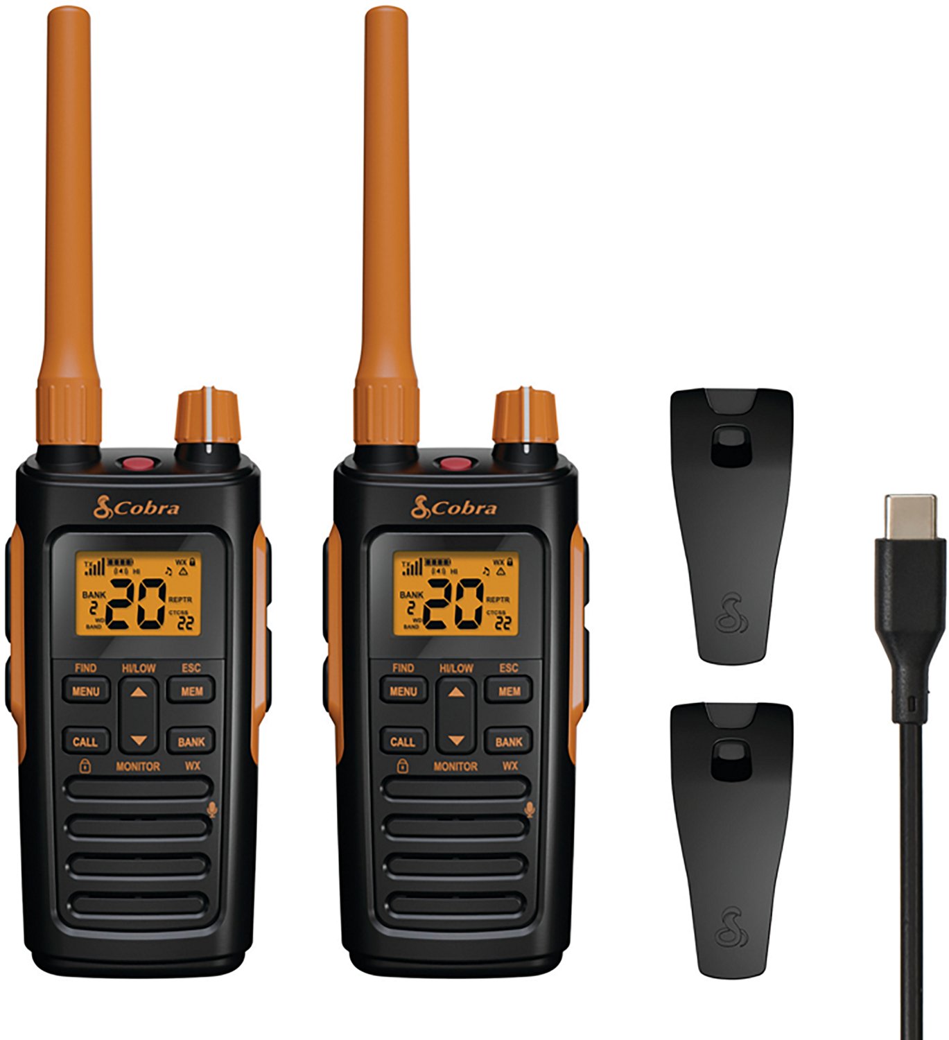 Stay in contact with the Cobra Trailblazer 450 GMRS Radios 2-Pack. These radios have access to over 150+ channels and 121 privacy codes as well as 10 NOAA/Weather channels. The FIND frequency scan and match provides quick connectivity with other radio systems, while the IP54 dust and water resistance affords durability.