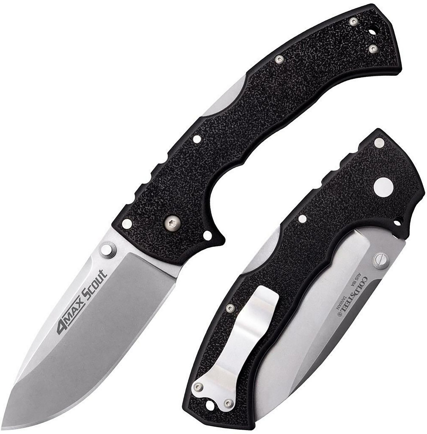 Stay prepared out in the field when you bring along the Cold Steel 4-Max Scout Folding Knife. The AUS 10A steel blade material with a stone wash finish offers strength and a lasting, efficient performance. The 4-inch extra wide, drop point blade is complemented with a 6-inch Griv-Ex™ handle to help ensure secure handling. The Tri-Ad locking mechanism encourages safe and secure storing, while the ambidextrous pocket and belt clip allows for comfortable carrying. 10-inch length.