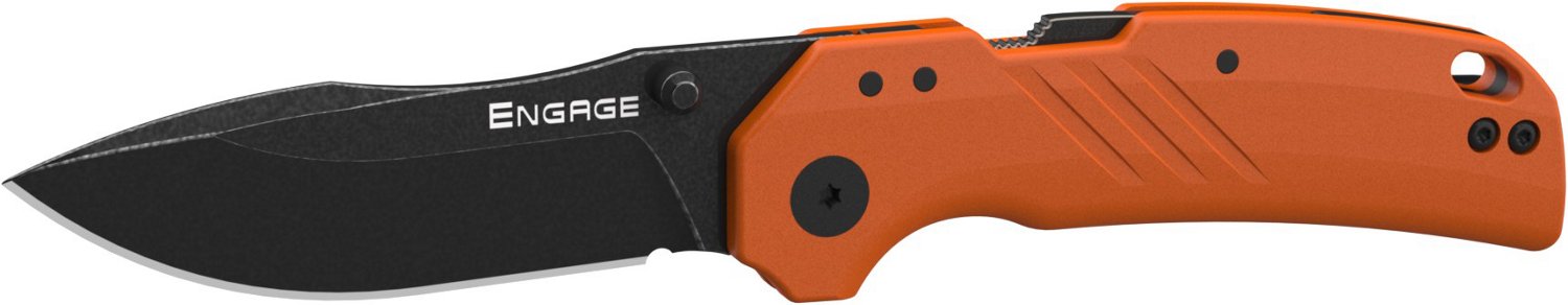 The Cold Steel Engage 3 in Drop Point Folding Knife is built to be an everyday carry option. The 4116 stainless steel blade delivers great edge retention, and the GFN handle promotes a comfortable hold. A slide-action Atlas™ Lock makes sure you safely deploy and lock the knife back into place for your safety, and the drop point blade allows for precise cutting.