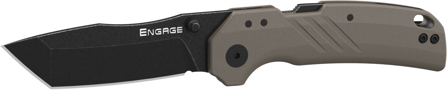 Make sure you always have a reliable knife by your side with the Cold Steel Engage 3 in Tanto Point Folding Knife. The 4116 stainless steel blade delivers great edge retention, and the FDE handle promotes a comfortable hold. A slide-action Atlas™ Lock makes sure you safely deploy and lock the knife back into place for your safety, and the tanto point blade allows for precise cutting.