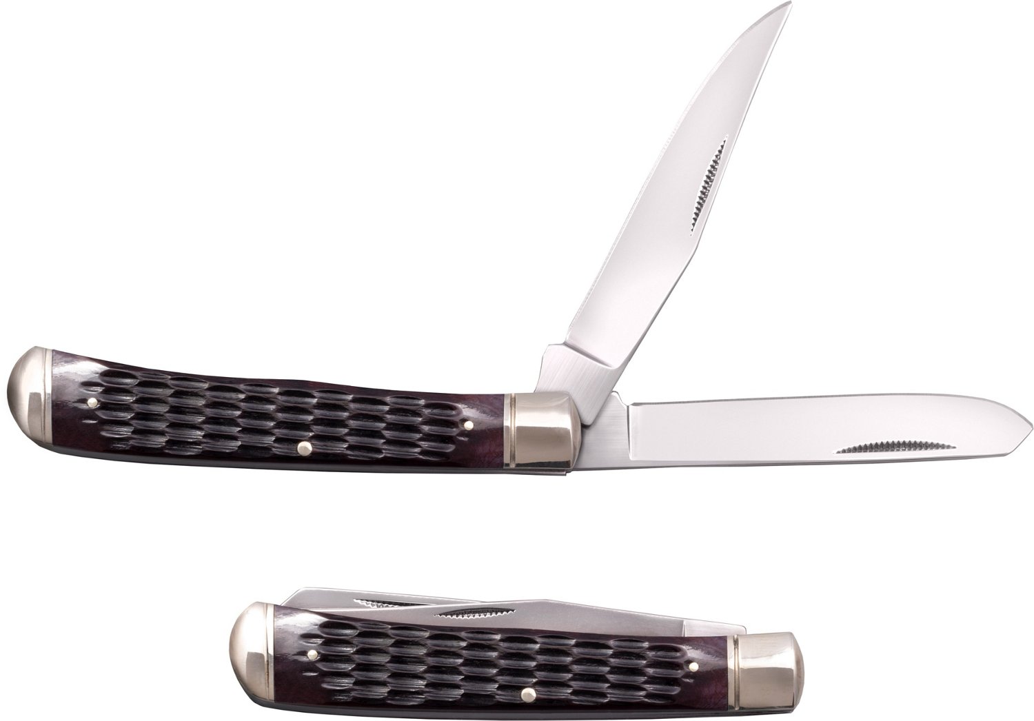 The Cold Steel Trapper Folding Knife is a perfect choice for rugged outdoorsman. The authentic bone handles are big enough to offer a comfortable hold, even when you are wearing gloves, and the 2 blades all provide various uses, including cutting, gutting, skinning and piercing. A slip joint locking mechanism makes sure you safely deploy and lock the knife back into place for your safety, and the stainless steel blades deliver excellent blade retention and sharpness.