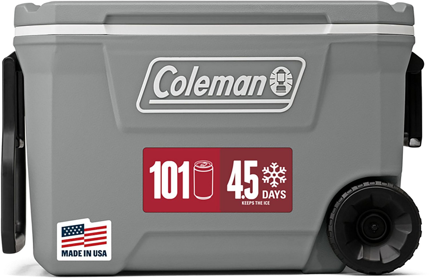 Pack your things for a weekend getaway with the Coleman 316 Series 62 qt Wheeled Hard Cooler. The fully insulated lid and body retains ice for up to 5 days, while the stain-resistant liner allows for easy cleaning. The Have-A-Seat lid supports up to 250 pounds, and the heavy duty 6-inch wheels allow for easy hauling.