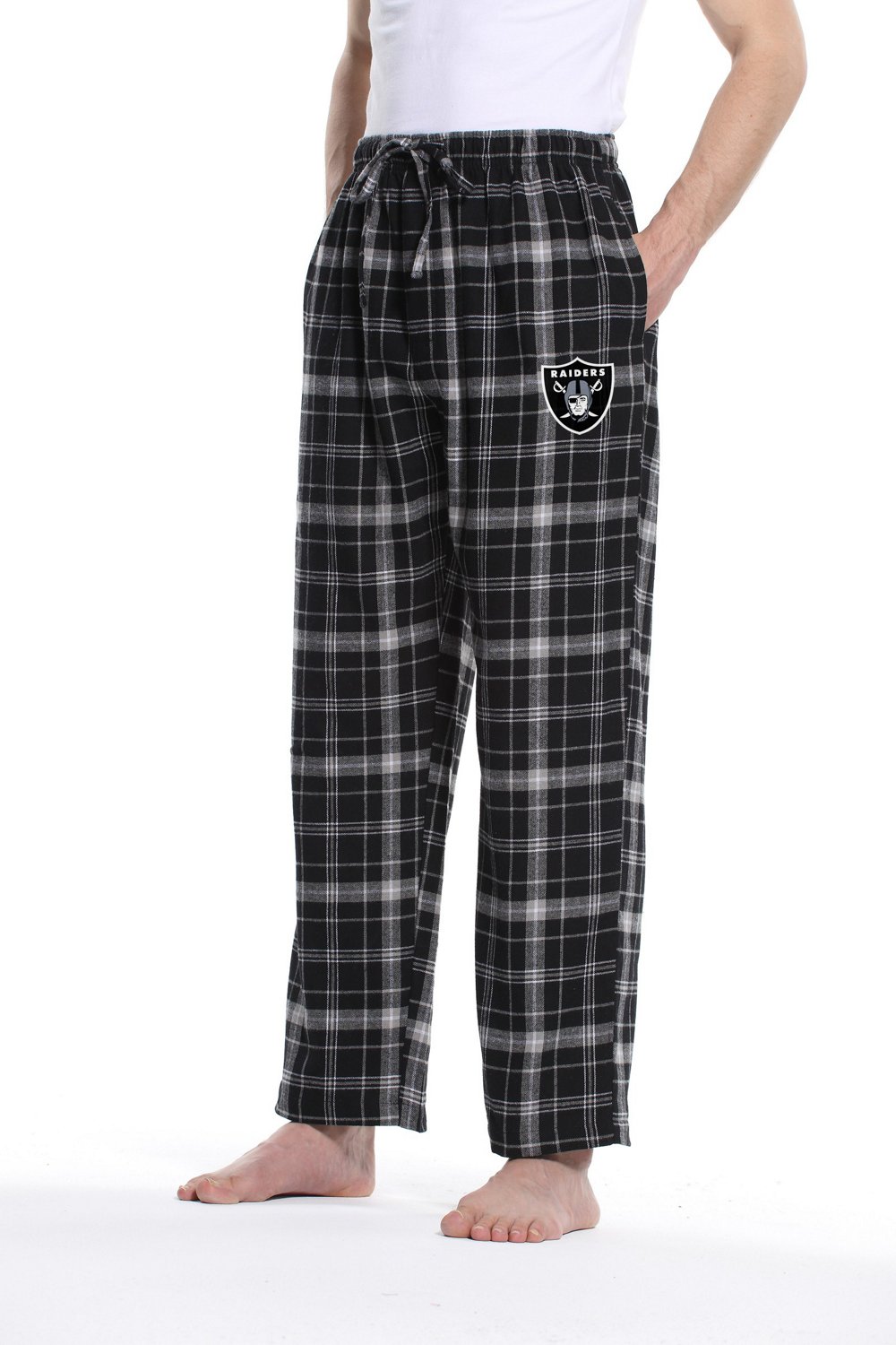 When wearing the College Concept Men's Las Vegas Raiders Ultimate Flannel Pants, fellow fans will know who you are cheering for. The pants are made of soft and cozy cotton flannel and feature a team logo on the left leg to help you prove you're a loyal fan. The hand pockets are great if you need simple storage.